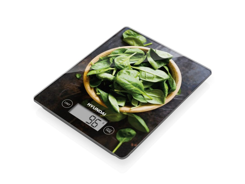Digitální kuchyňská váha v zajímavém provedení s bazalkovými listy a skleněnou vážicí plochou, která váží s vysokou přesností do 5 kg s rozlišením na 1 g. Suroviny lze vážit v gramech, librách a uncích, objem vody a mléka je pak měřen v mililitrech.