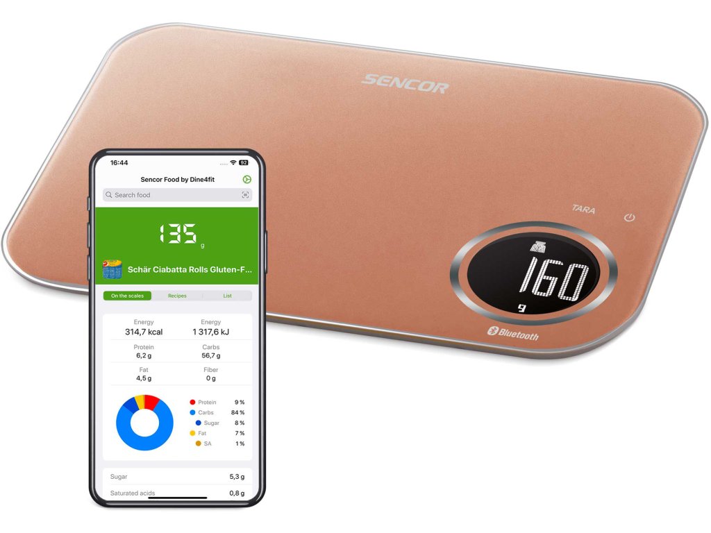 Chytrá kuchyňská váha s Bluetooth a aplikací Sencor FOOD vytvořenou ve spolupráci s tvůrci aplikace Kalorické tabulky.