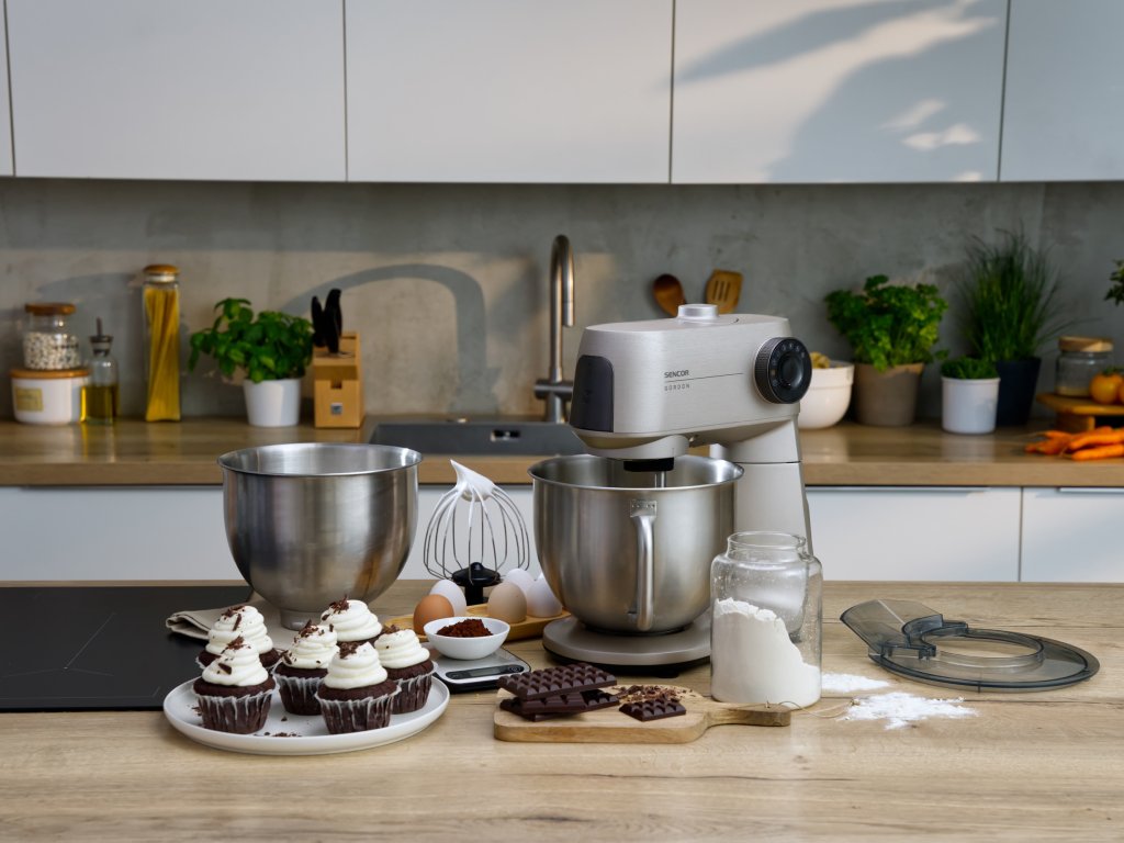 Kuchyňský robot Sencor STM 7651WS s vysokým výkonem 1 500 W, robustním celokovovým tělem a planetární převodovkou zvládne až 1,6 kg těsta nebo 2,7 l krému. Součástí je odnímatelná chytrá váha s aplikací Sencor FOOD, LED osvětlení mísy a bohaté příslušenství. Navíc je navržen a designován v ČR.