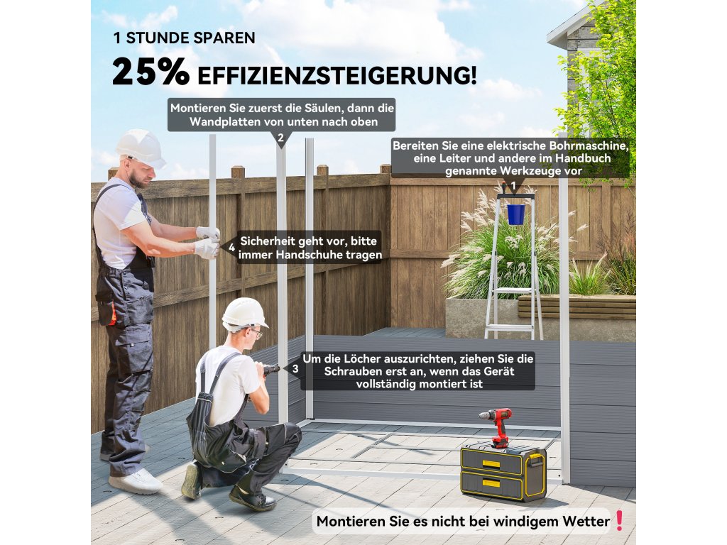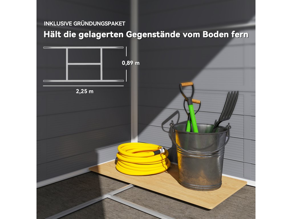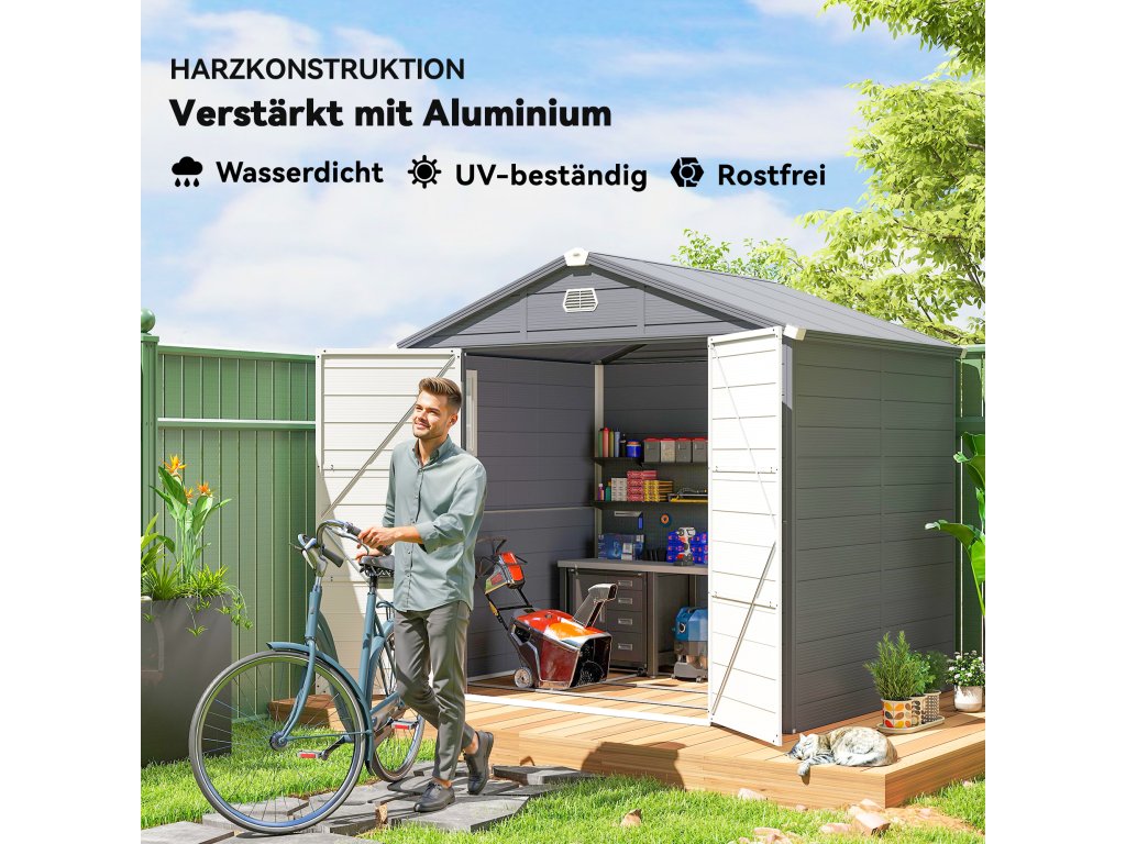 - Vysoce kvalitní materiál: Robustní plast kůlny na nářadí nabízí dlouhotrvající ochranu vašeho zahradního nářadí před hmyzem, slunečním zářením a deštěm