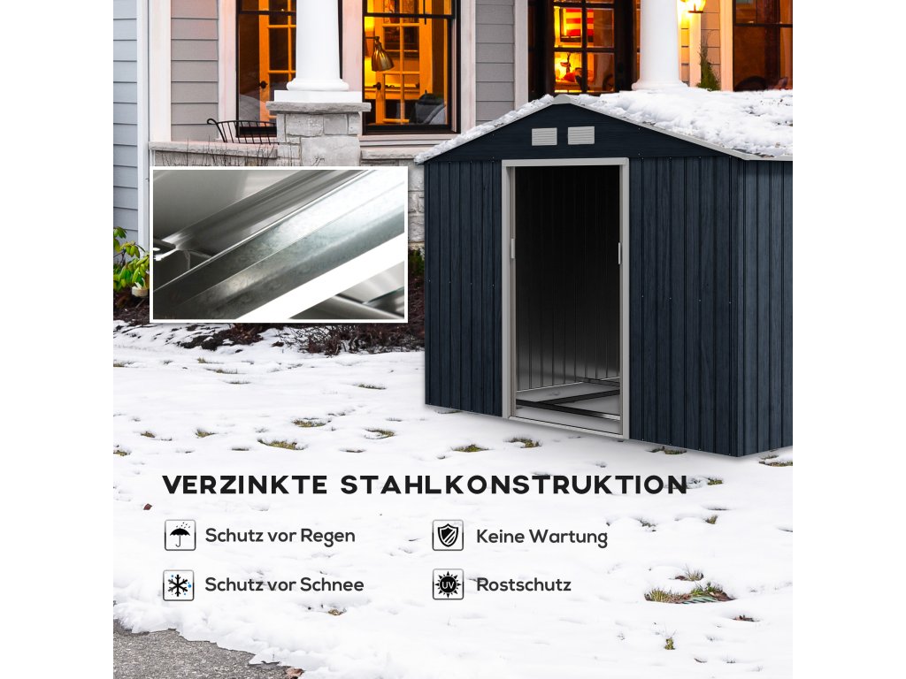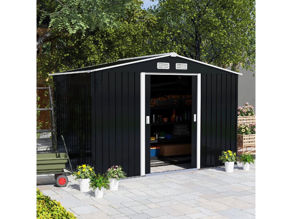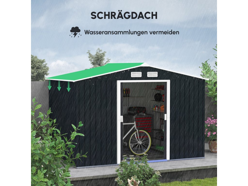 Kůlna na nářadí Outsunny s posuvnými dveřmi 2,77 x 1,95 x 1,92 m kovová šedá s uhlím