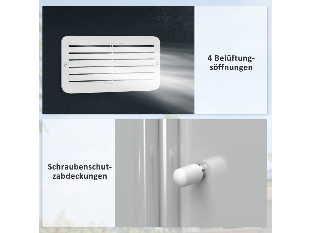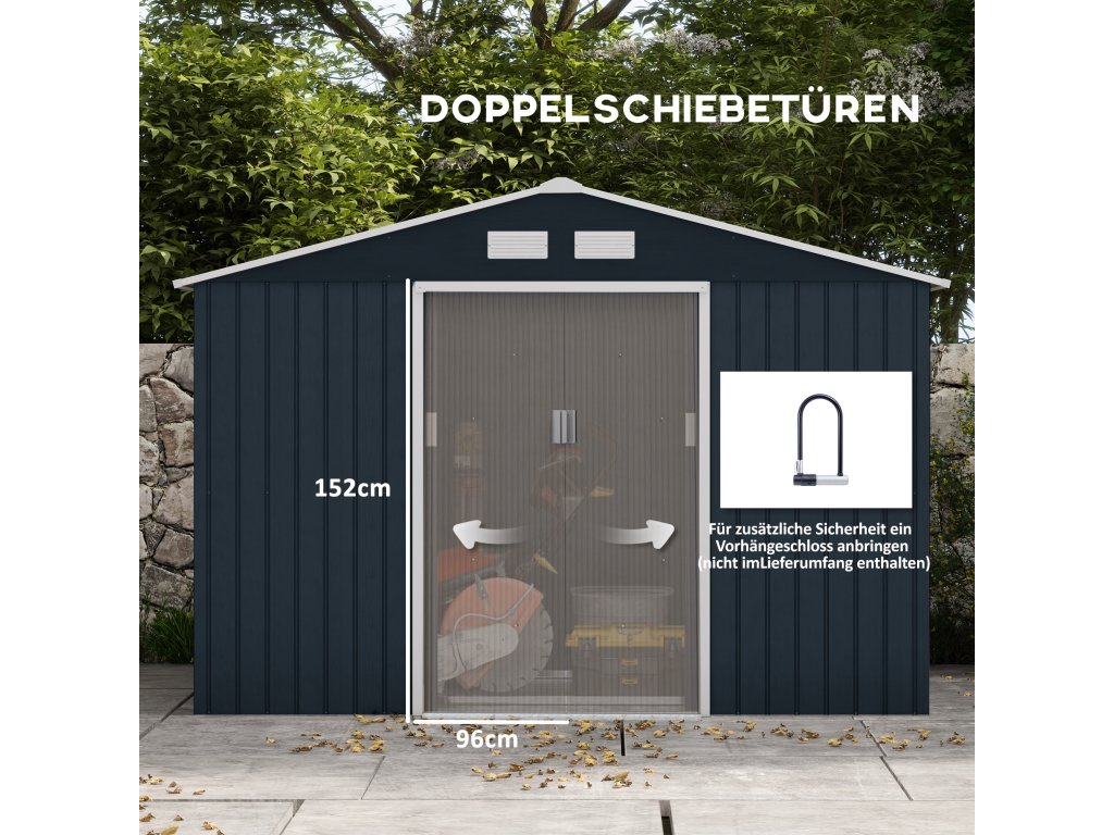 - 2 posuvné dveře: Dvoje hladce se pohybující posuvné dveře na kůlně na nářadí vám usnadní přístup do vnitřku kůlny a ochrání ji před silnými poryvy větru.
