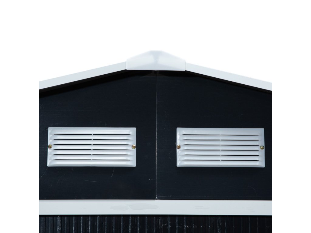 - Dobré větrání: 2 okenní otvory, každý v přední a zadní části kůlny, zajišťují příjemné větrání.