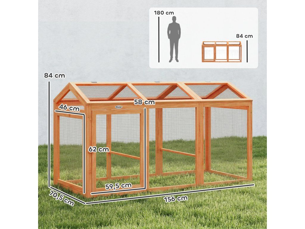 Kurník PawHut, výběh s bidýlkem, dvojité dveře, dřevo a kov, pro 4 kuřata, 156 x 70,5 x 84 cm, oranžový