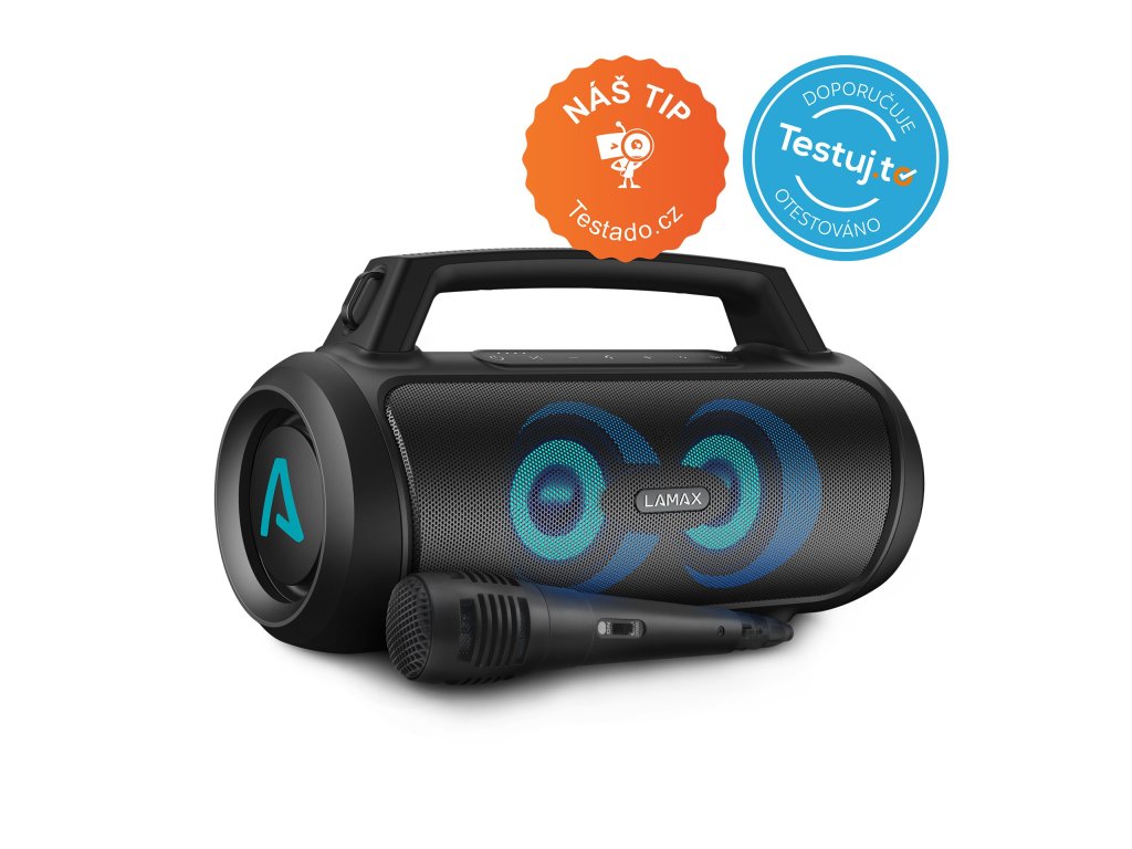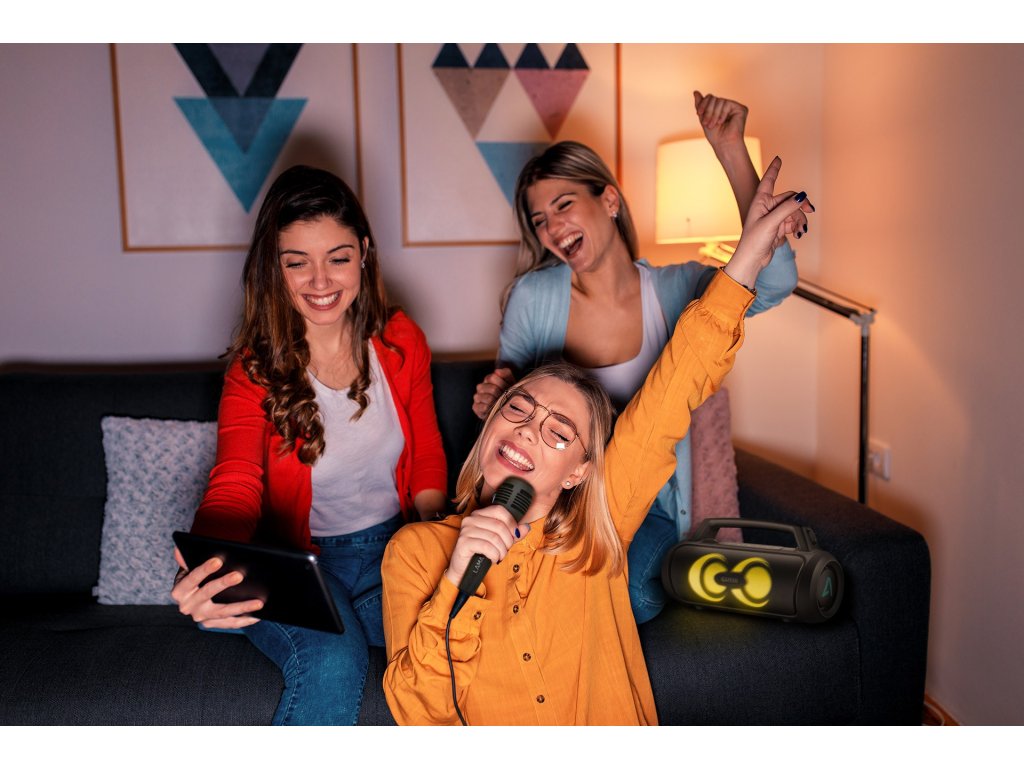 Ovládněte každou party. Součástí balení reproduktoru je mikrofon umožňující moderování nebo organizaci karaoke, kdy si můžete zazpívat se svými idoly. Hlasitost si snadno nastavíte.