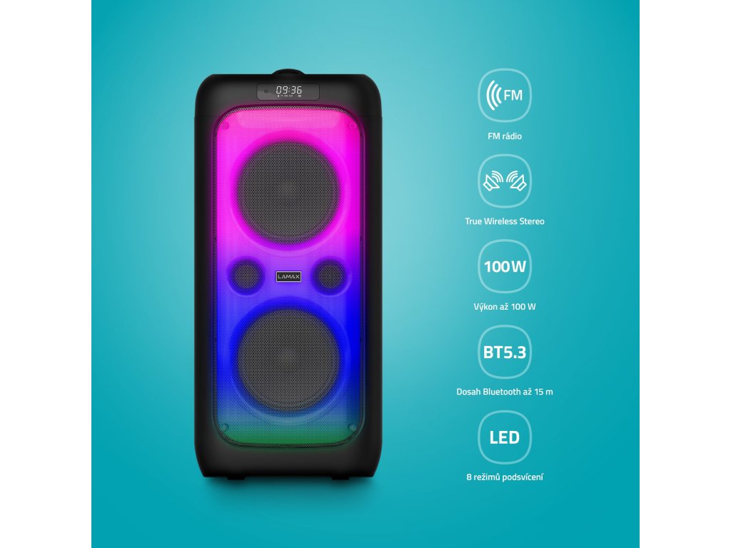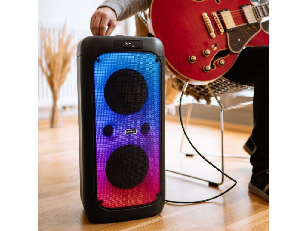 Král každý pártyStačí jeden pohled a je jasný, že se na scéně objevil král. Když navíc rozezní dokonalý beaty, nikdo nebude pochybovat, kdo vládne týhle párty. LAMAX PartyKing1 Plus má vše, co potřebuješ, abys každou akci proměnil v zážitek roku. Radši rovnou pozvi i sousedy, ať si nestěžují, protože dvoupásmový reproduktory začnou výkonem 100 W chrlit naprosto čistě ty největší pecky. Formátů tenhle reprák podporuje hned několik, stejně tak vstupů, a navíc ti naladí i FM rádio, takže si na svoje přijdou milovníci všech žánrů, ať už na rodinné oslavě nebo třeba když rozhýbete svoje těla při sportu. Ten správný sound ještě podpoří nastavitelný ekvalizér s technologií BeatBass® a vibe dodá až 8 LED efektů. Reprák propojíš pomocí Bluetooth 5.3 s různými zařízeními a na jedno nabití odehraje až 14 hodin. Je ti to málo? Tak k tomu přidej LED displej, funkci True Wireless Stereo a možnost připojení kytary i mikrofonu, který máš rovnou přibalený. Až pak rozjedete s kámošema to pravý karaoke, můžete si ho rovnou i nahrát.