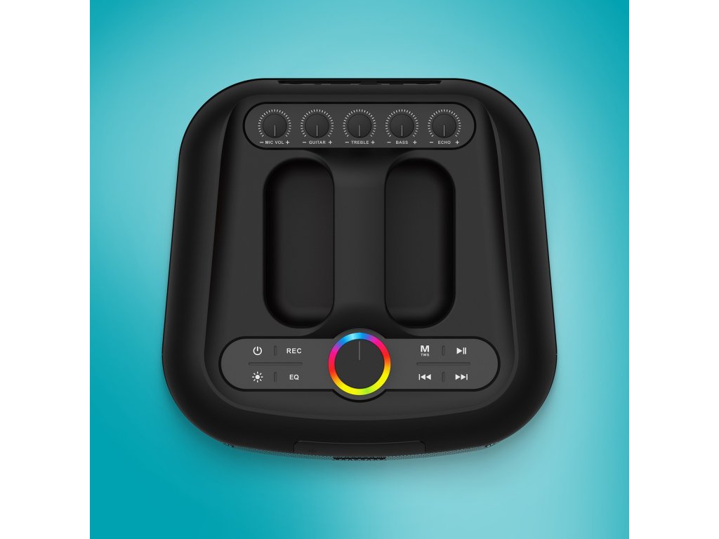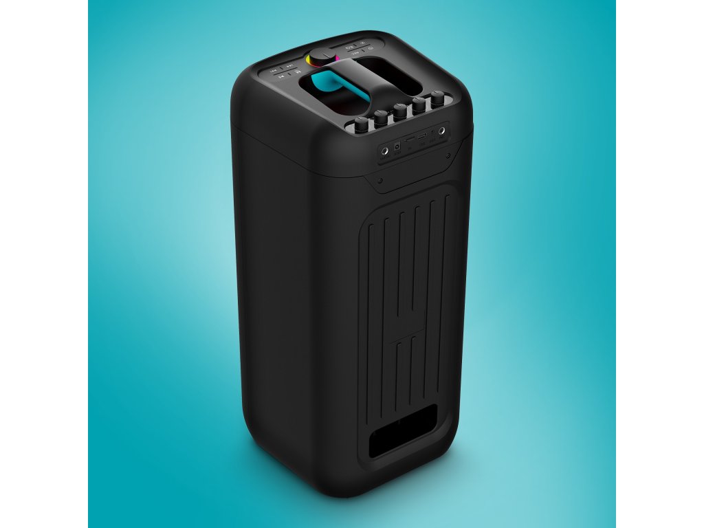 Součástí balení reproduktoru je bezdrátový mikrofon pro rozjezd nejlepšího karaoke nebo moderaci akce.