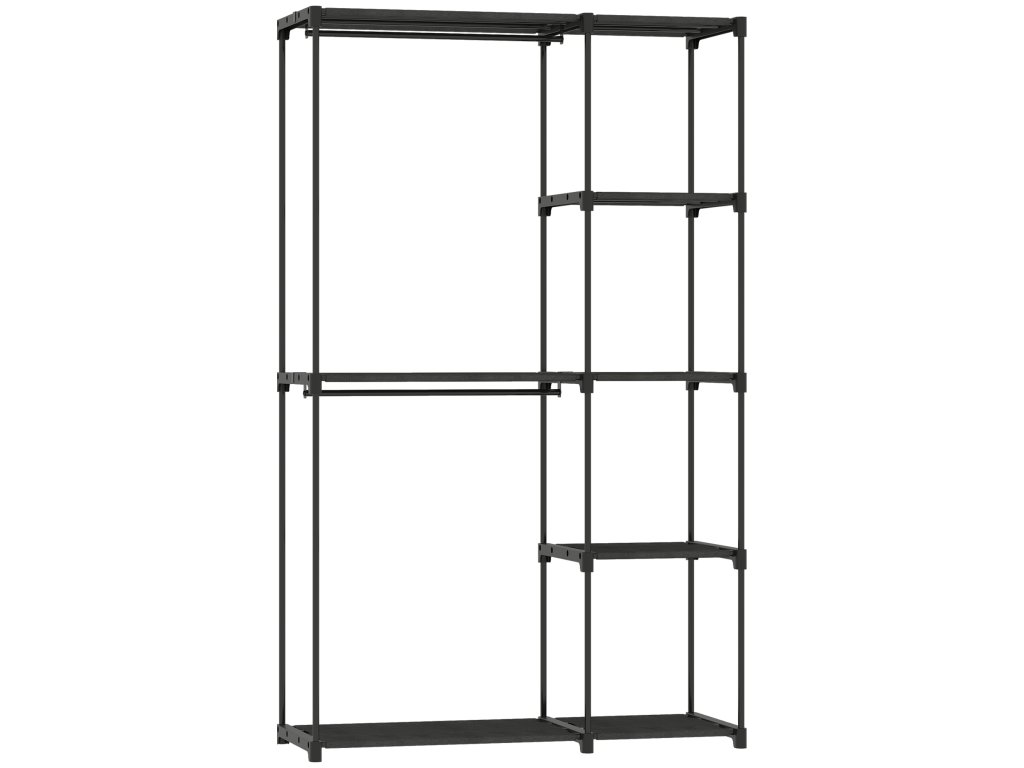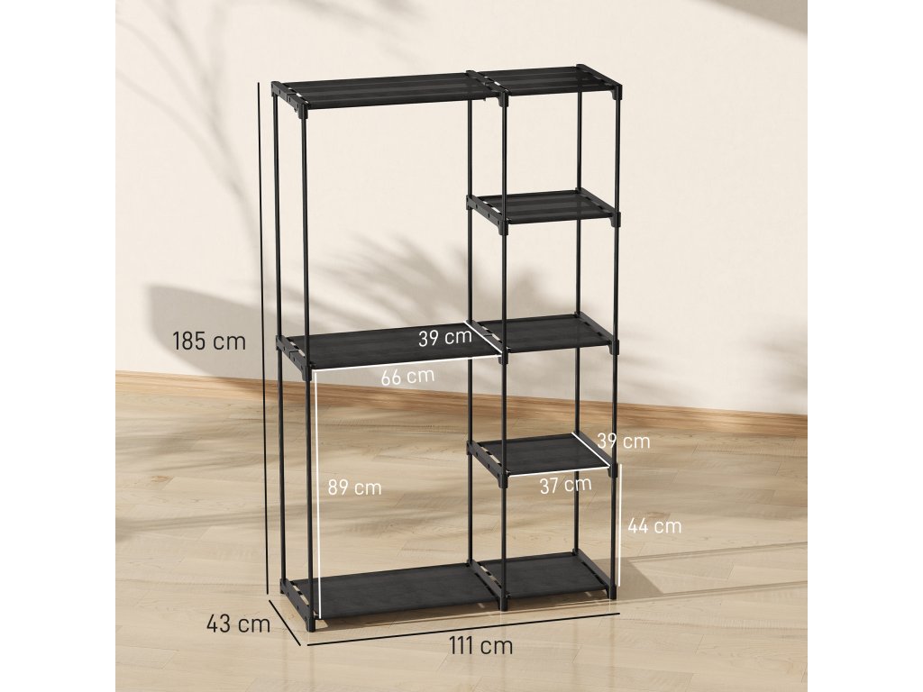 Látková šatní skříň HOMCOM s šatní tyčí a policemi do ložnice a šatny, 111 x 43 x 185 cm, černá