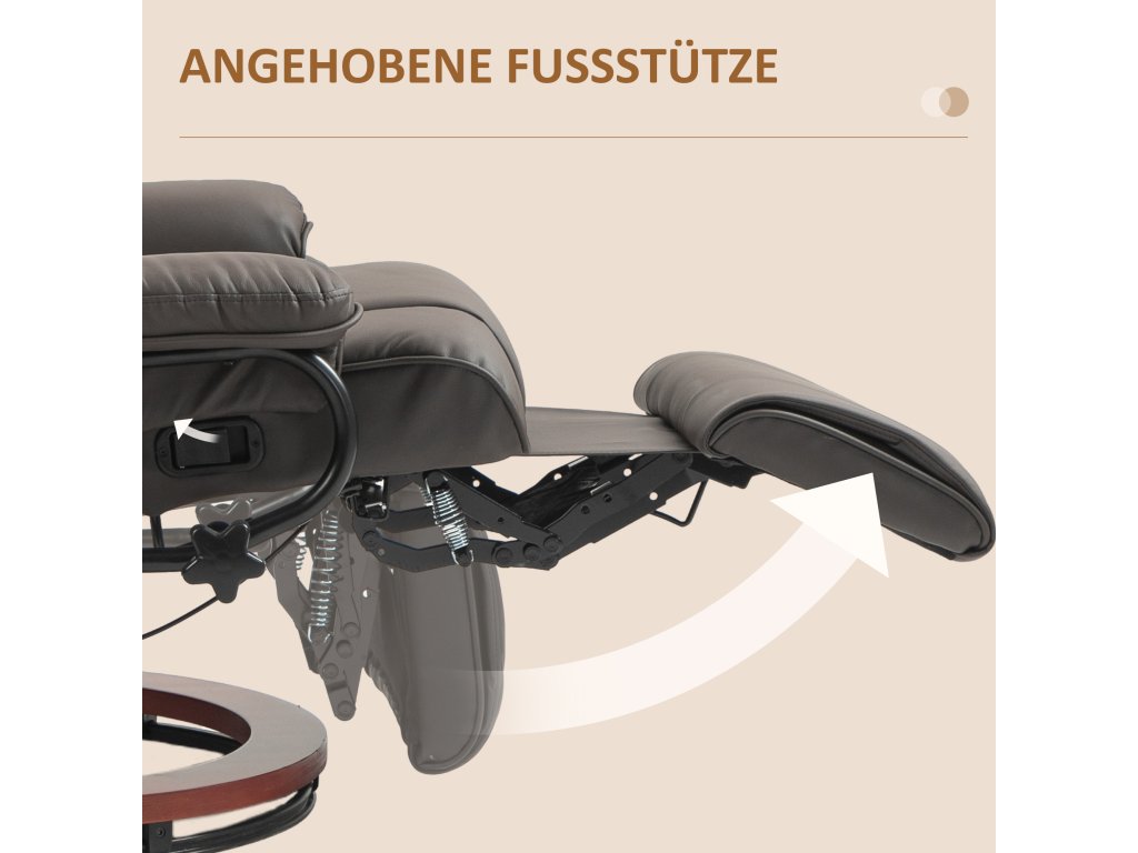 Lehátko HOMCOM s funkcí polohování, otočné, do 150 kg, potah imitace kůže, ocelový rám, hnědá barva