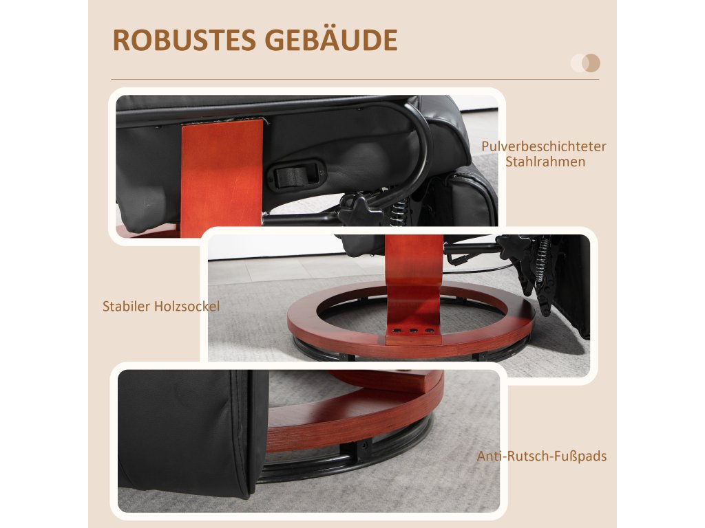 - Robustní a stabilní: Robustní základna z materiálu na bázi dřeva a práškově lakovaný ocelový rám činí z tohoto polohovacího křesla ideální místo k odpočinku. Ochranné nožky zabraňují poškrábání podlahy, takže je vynikající volbou pro vaši domácnost