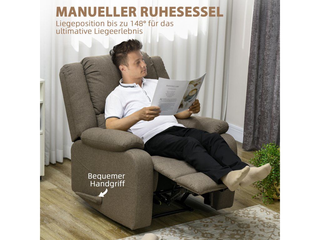 - Robustní konstrukce: Toto televizní křeslo s funkcí polohování je vybaveno robustním ocelovým rámem a snadno unese až 150 kg. Vysoce kvalitní čalounění a látkový potah slibují odolnost a výjimečné pohodlí při sezení