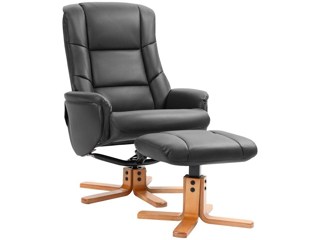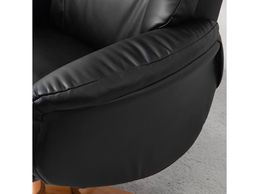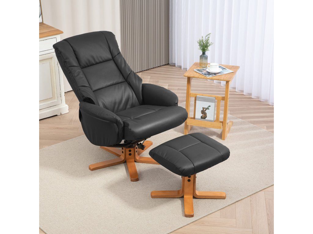 Lehátko HOMCOM s otomanem, funkce polohování, potah imitace kůže, do 150 kg, 71 x 84 x 102 cm, černá barva