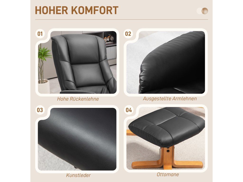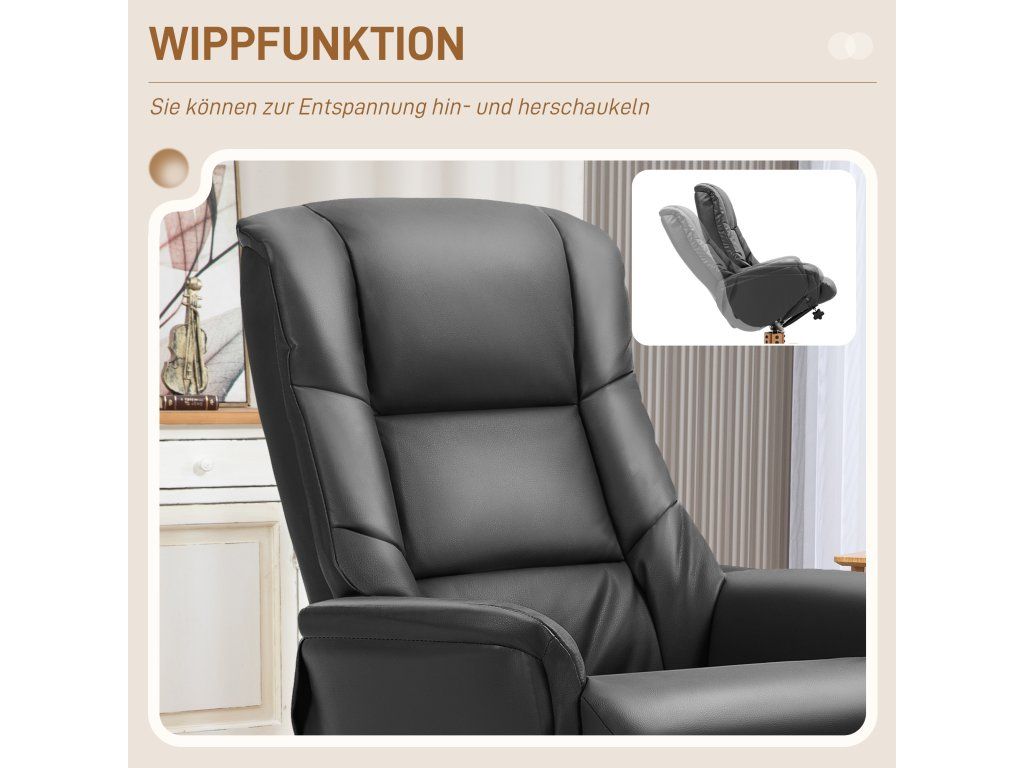 Relaxujte stylově s polohovacím křeslem s podnožkou od společnosti HOMCOM, vaším novým partnerem pro dokonalou relaxaci! Opřete se až do úhlu 135° a užijte si funkci houpání. Dopřejte si ryzí luxus s naším lehátkem, které je potažené elegantní umělou kůží a zasazené do robustního rámu z přírodního dřeva. Skvěle se hodí jako křeslo do obývacího pokoje nebo k televizi. Sen pro každého, kdo hledá pohodlí a styl.