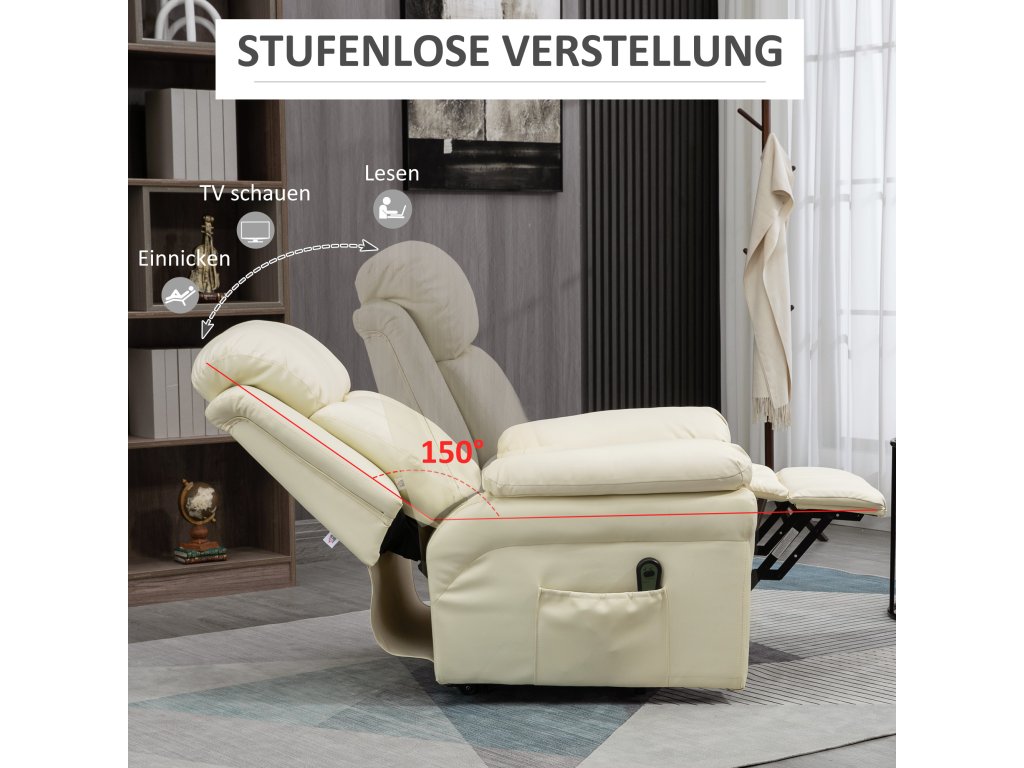 Lehátko HOMCOM se stojánkem, včetně podnožky a opěrky hlavy, 1 dálkové ovládání, krémově bílá