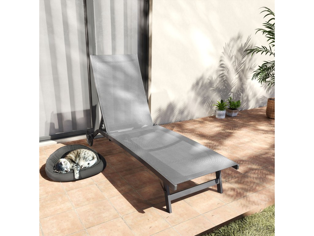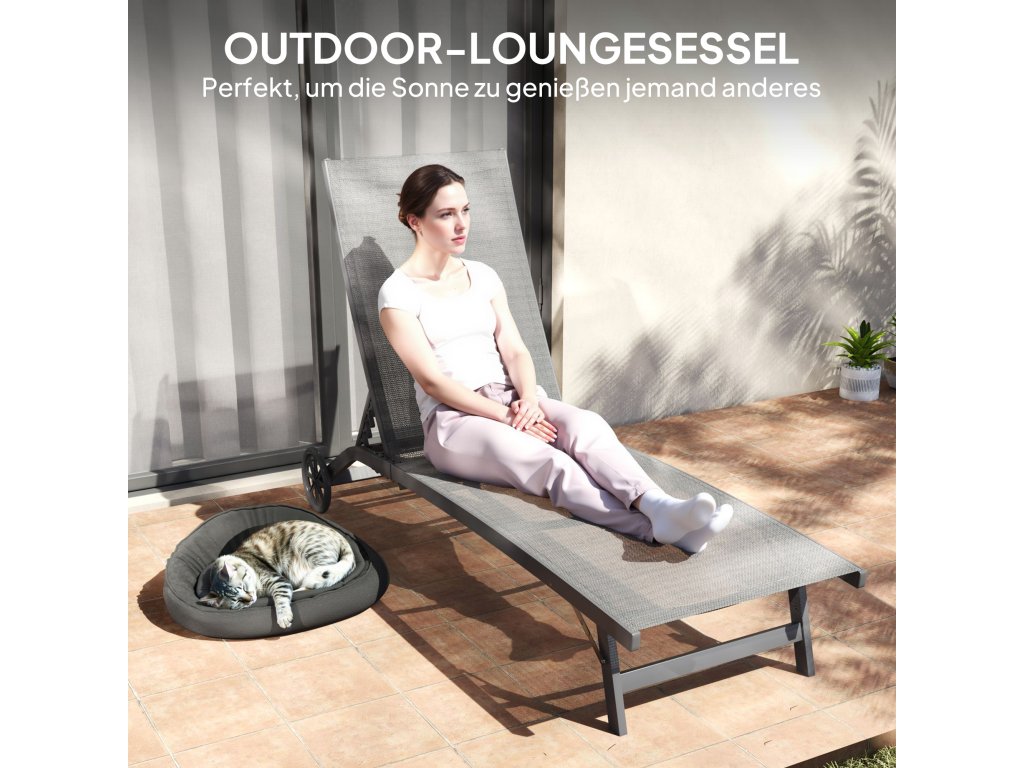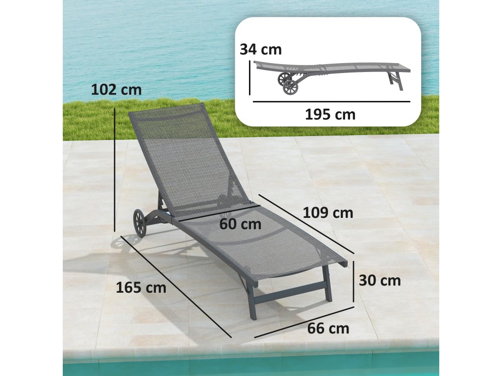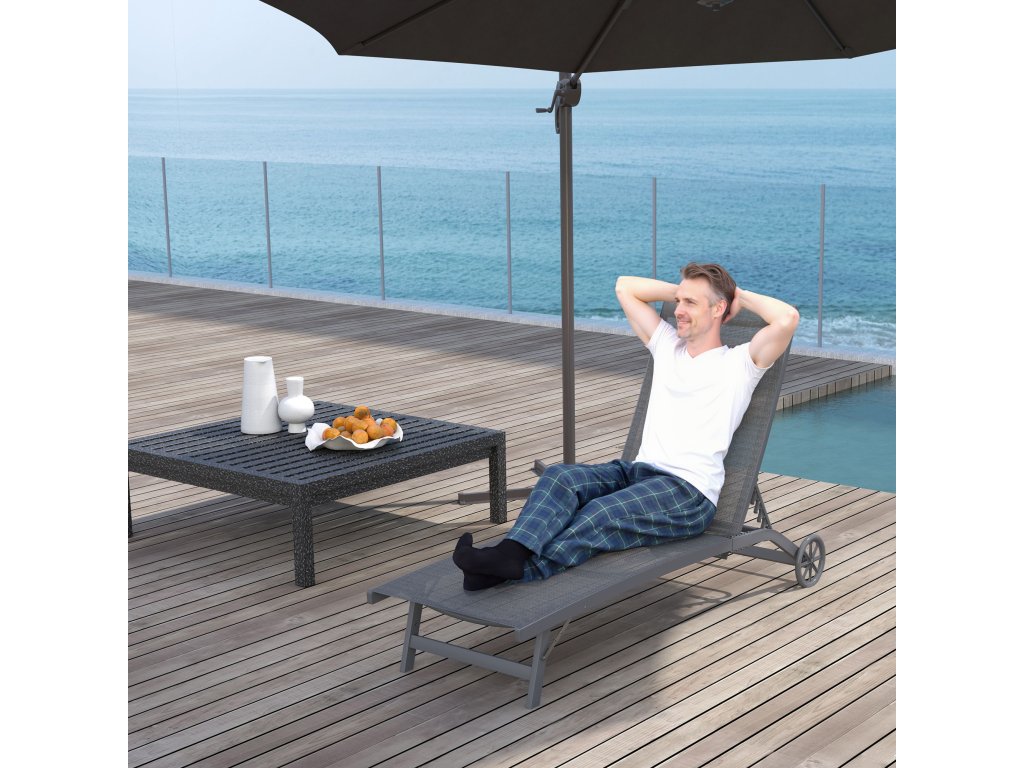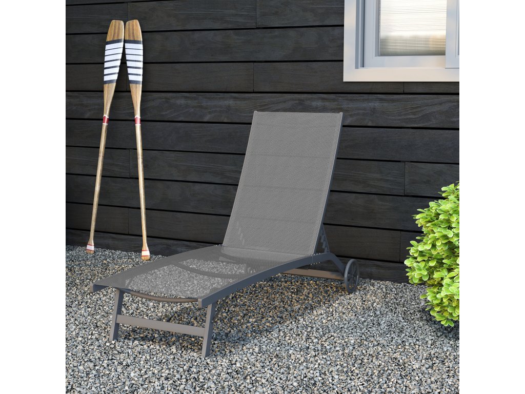 Lehátko Outsunny, 5stupňově nastavitelné opěradlo, prodyšná tkanina, hliníkový rám, tmavě šedá barva, 195 x 66 x 34 cm