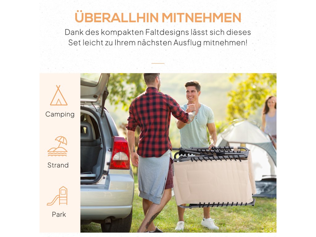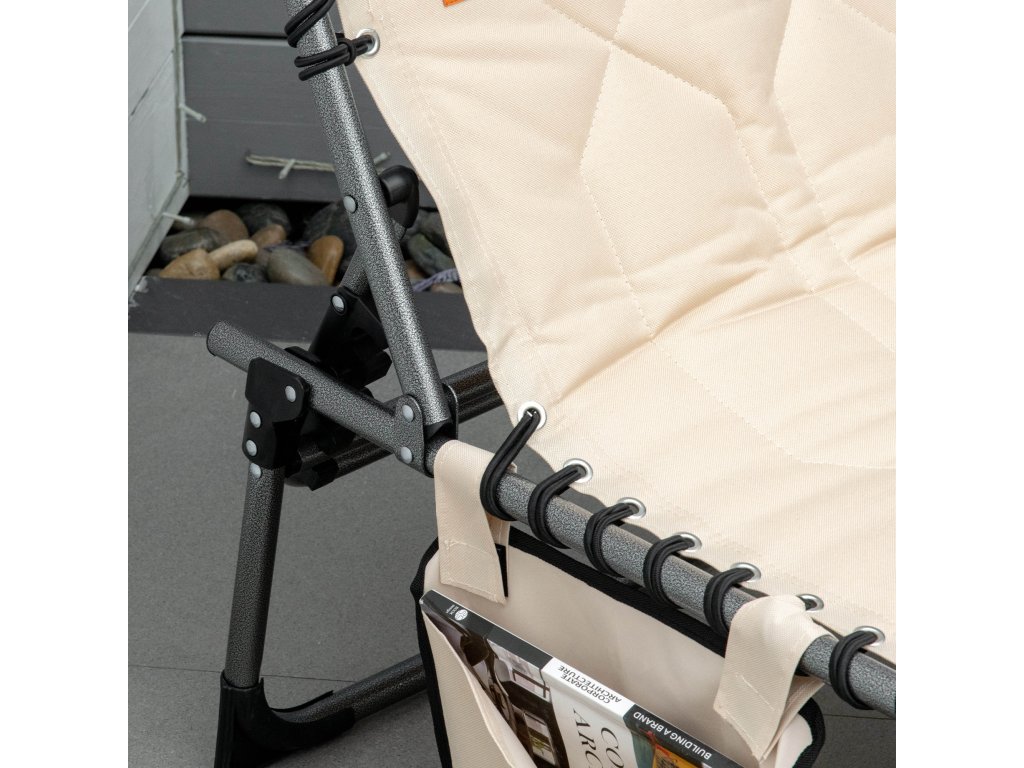 - Pohodlí: Pěnové polstrování s potahem z látky Oxford kempingového lehátka nabízí vysoký komfort a odolnost a polstrovaná opěrka hlavy poskytuje další pohodlí. Boční kapsa nabízí prostor pro mobilní telefony, časopisy a další drobné předměty