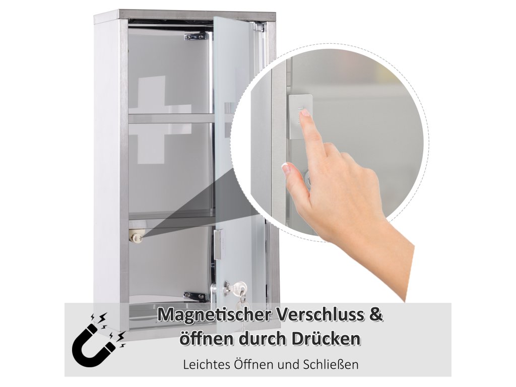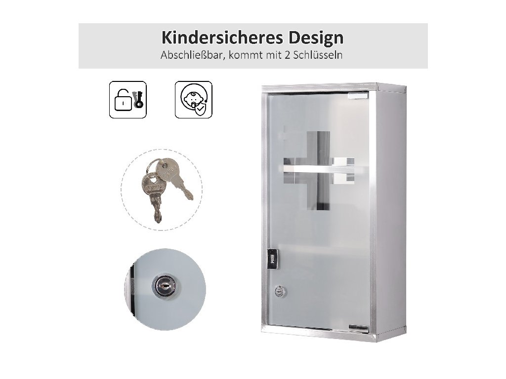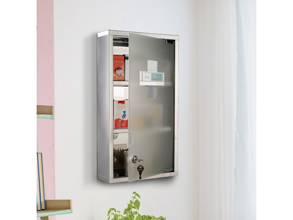 V domácnostech s dětmi a domácími mazlíčky je nutné uchovávat lékařské předpisy a léky mimo dosah. Proto je tato nástěnná skříňka na léky se 2 klíči nezbytným vybavením pro všechny domácnosti. Její tělo je vyrobeno z nerezové oceli 430, což je robustní a odolné složení, které nerezaví, takže může být bezpečně uložena ve vaší koupelně.