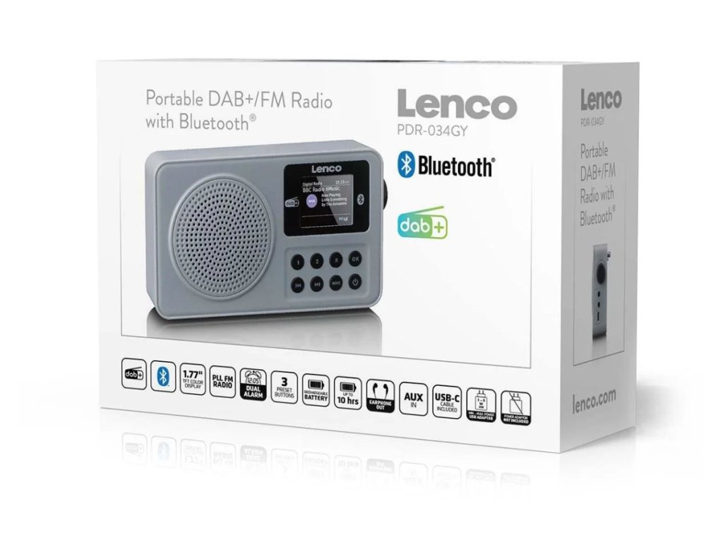 Lenco PDR-034GY je vybaven vestavěnou dobíjecí baterií. Můžete jej vzít s sebou kamkoli a zpříjemnit si práci či chvíle oddechu poslechem oblíbených melodií.