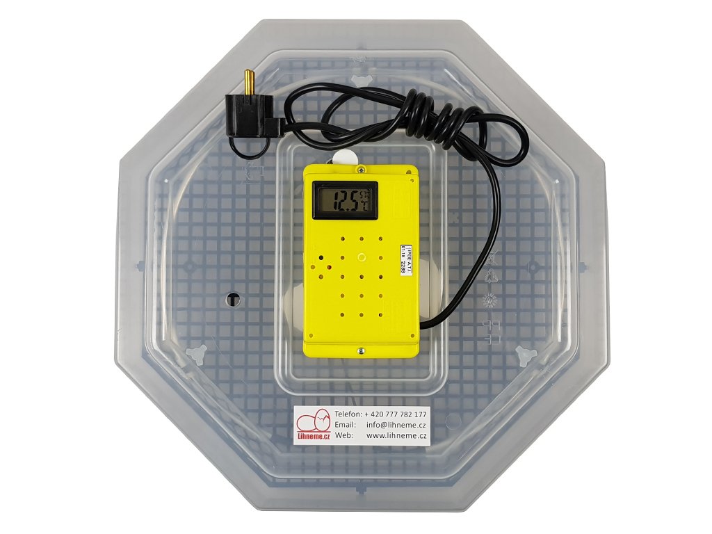 Teplotu je možné nastavit a případně i dále regulovat v rozsahu od 35 do 40°C za pomoci manuálního regulátoru u elektronické řídící jednotky. Panel je vybaven digitálním displejem s ukazatelem teploty a vlhkosti, a na levém boku otočným regulátorem pro potřebné nastavení teploty v líhni.