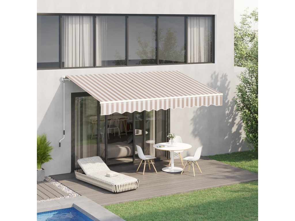 Markýza Outsunny s ruční klikou, markýza se sklopným ramenem, ochrana proti slunci, montáž na stěnu, balkon, hliníkové hory 3 x 2,5 m