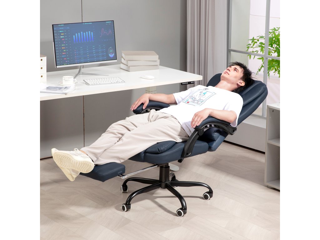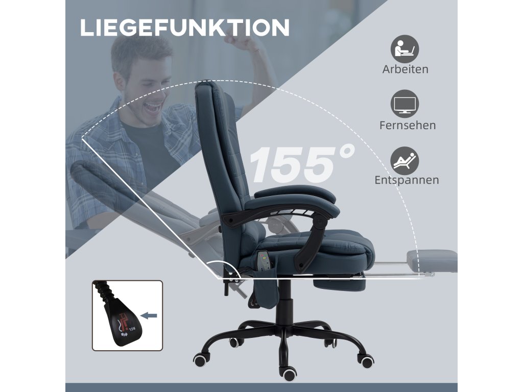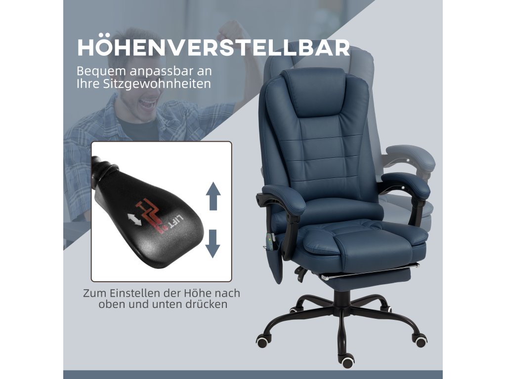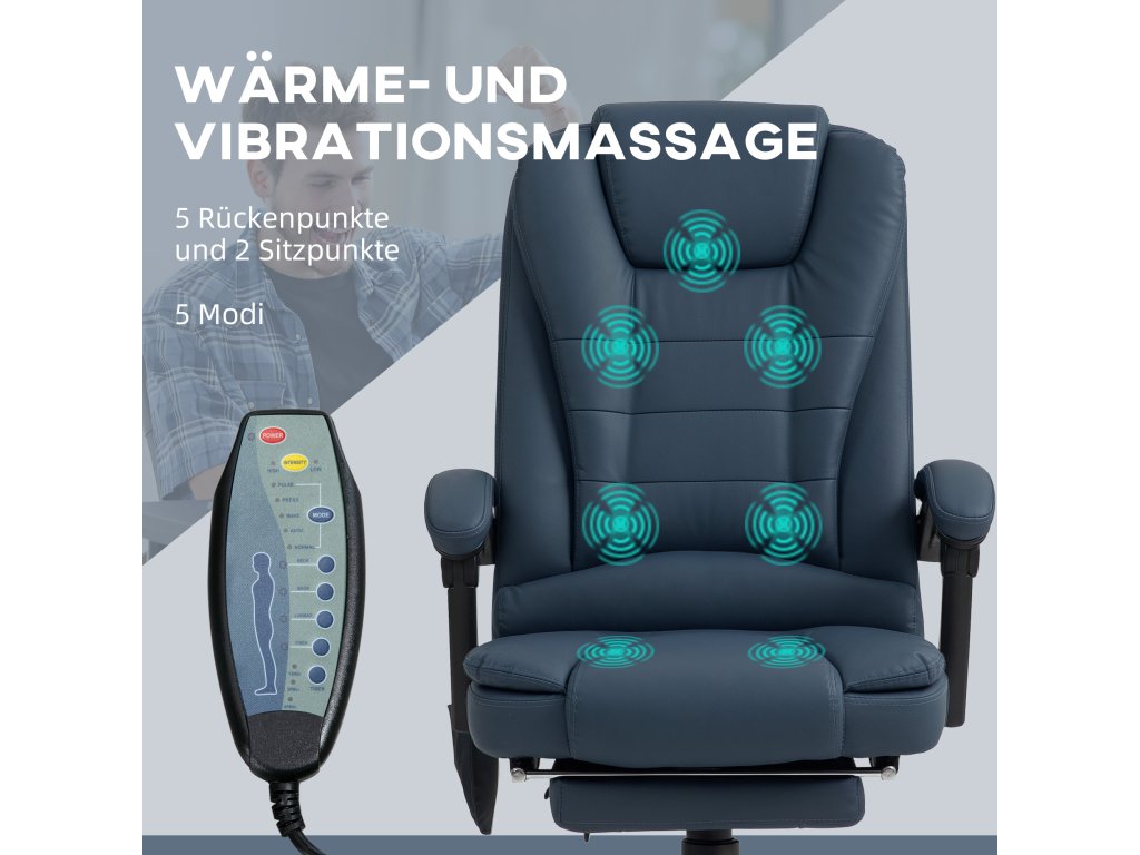 Masážní kancelářská židle Vinsetto, 7 vibračních bodů, nastavitelná opěrka nohou a opěradla, do 120 kg, vzhled kůže, modrá barva