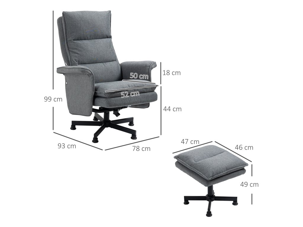 Odolná konstrukce: Toto masážní křeslo s podnožkou je podepřeno ocelovými nohami s práškovým nástřikem a je dostatečně robustní, aby uneslo hmotnost 120 kg. Součástí dodávky jsou podnožky, které zabraňují poškrábání podlahy. Rozměry křesla: 78D x 93Š x 99V cm. Rozměry podnožky: 47D x 46Š x 49V cm. Nutná montáž.