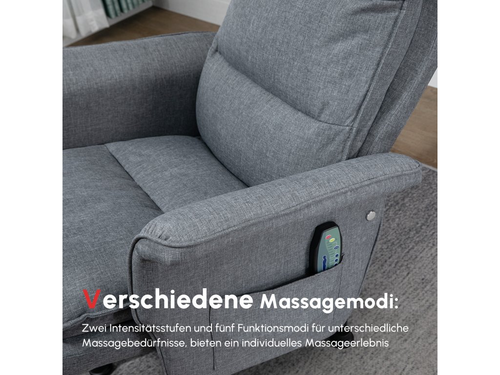 Snadné použití: Toto TV křeslo s podnožkou je dodáváno s dálkovým ovládáním, které umožňuje spustit nebo zastavit masáž a změnit režimy a masážní oblast stisknutím tlačítka. Na boku křesla se nachází praktická boční kapsa.