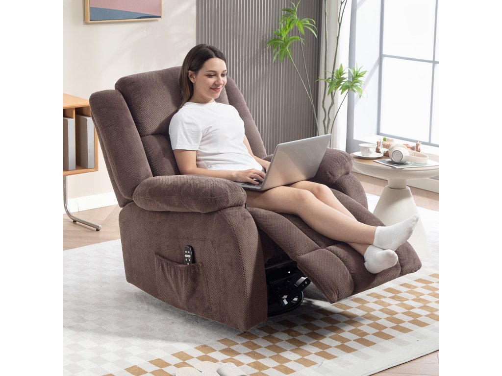 Vibrační masáž: Zažijte uklidňující pohodlí s osmi vibračními masážními body TV křesla, které konkrétně masírují vaše záda, bederní oblast, stehna a nohy v pěti různých režimech a s funkcí vyhřívání bederní oblasti. Pomocí dálkového ovládání můžete pohodlně ovládat masáž a proměnit svůj obývací pokoj v soukromou wellness oázu.