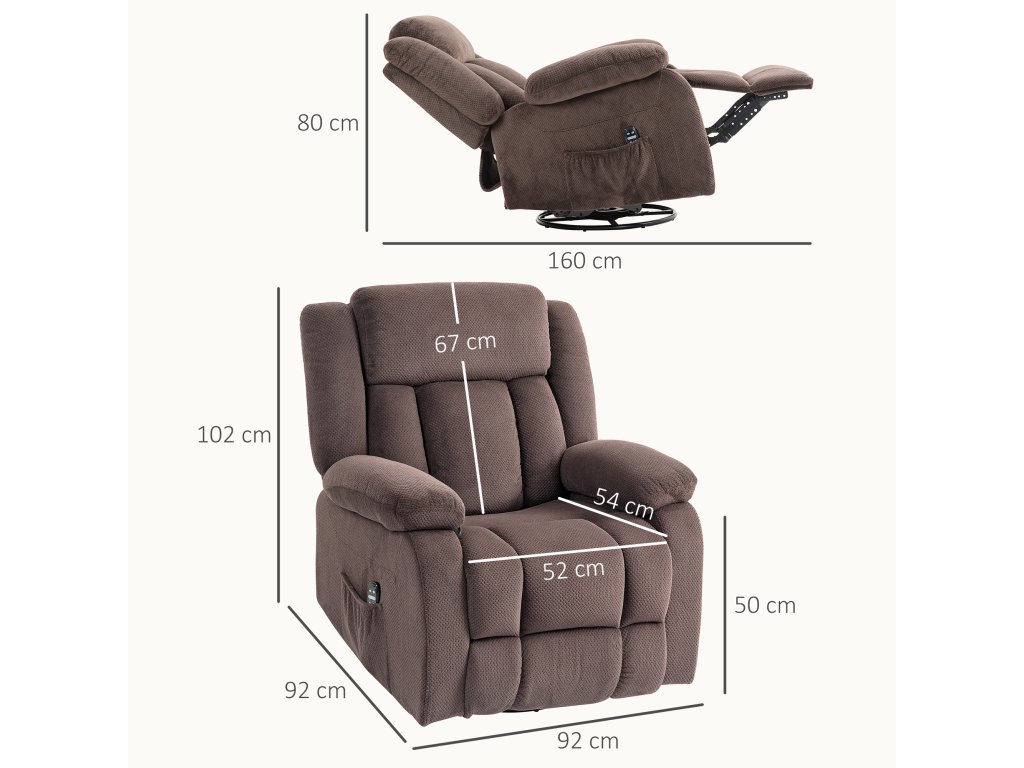 Masážní křeslo HOMCOM, 8 vibračních bodů, 5 režimů, vyhřívání bederní páteře, nastavitelné, otočné, čalouněné křeslo, hnědé
