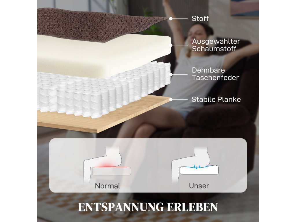Pohodlí: Relaxujte v tomto velkoryse polstrovaném polohovacím křesle s měkkým, sametovým čalouněním, hustou, vysoce kvalitní pěnou, taštičkovou pružinou a silnými, polstrovanými područkami. Opěradlo o tloušťce 25 cm poskytuje dodatečné pohodlí a útulnost.