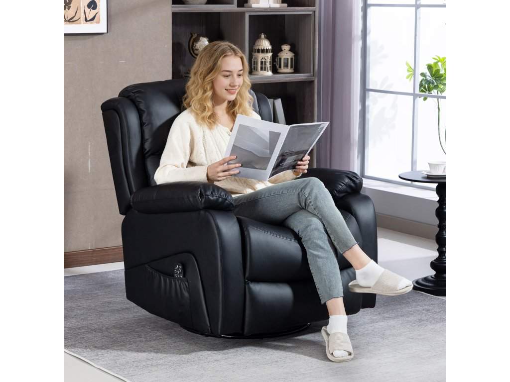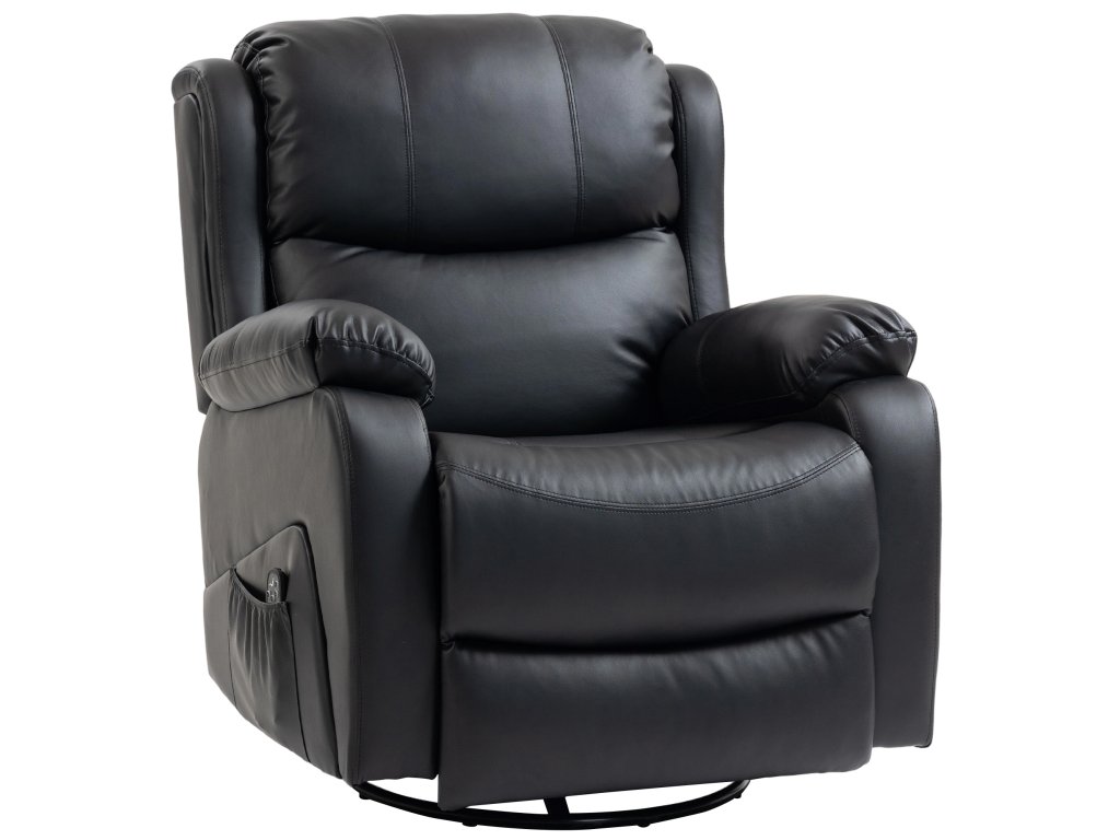 Masážní křeslo HOMCOM, funkce vyhřívání a polohování, umělá kůže, nosnost do 150 kg, 97x92x104 cm, černá