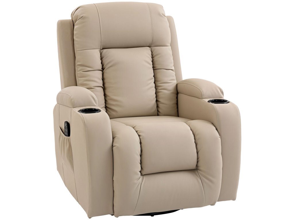 Masážní křeslo HOMCOM s houpací, polohovací a vyhřívací funkcí, 3 režimy, otočné, krémově bílé