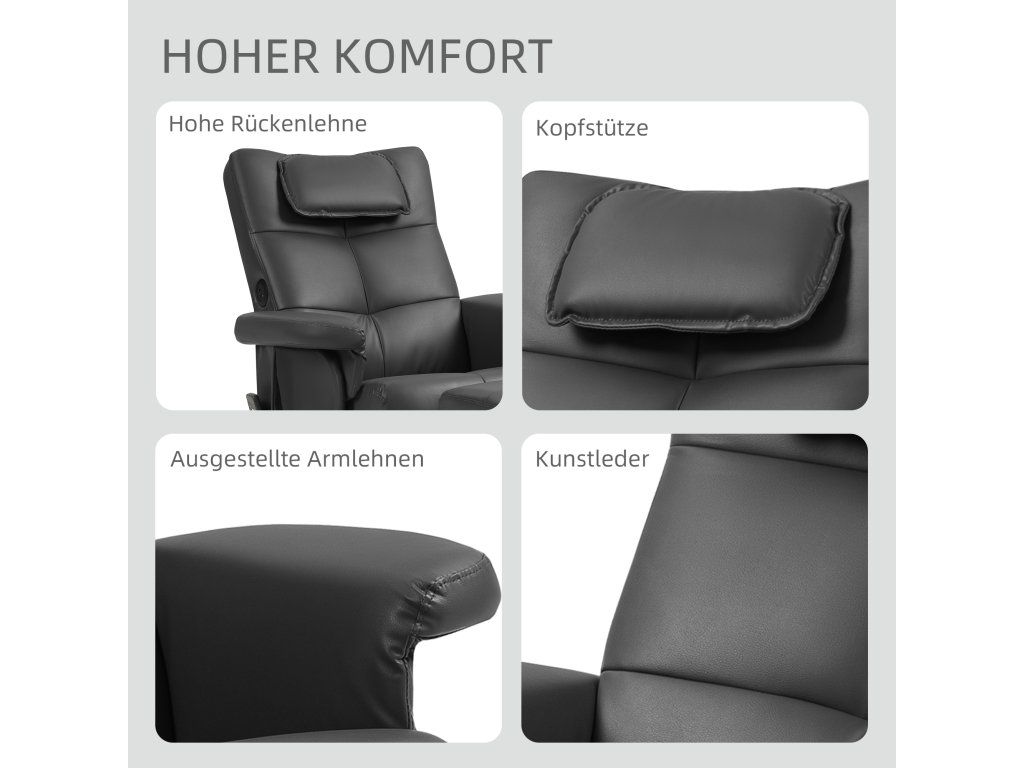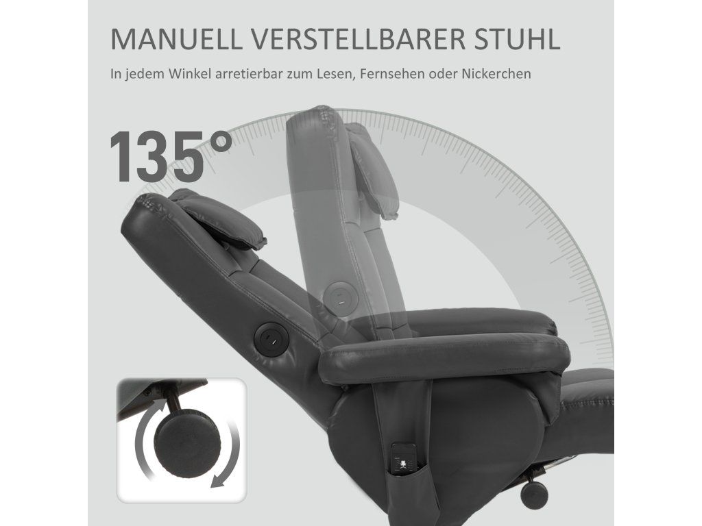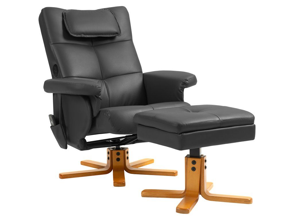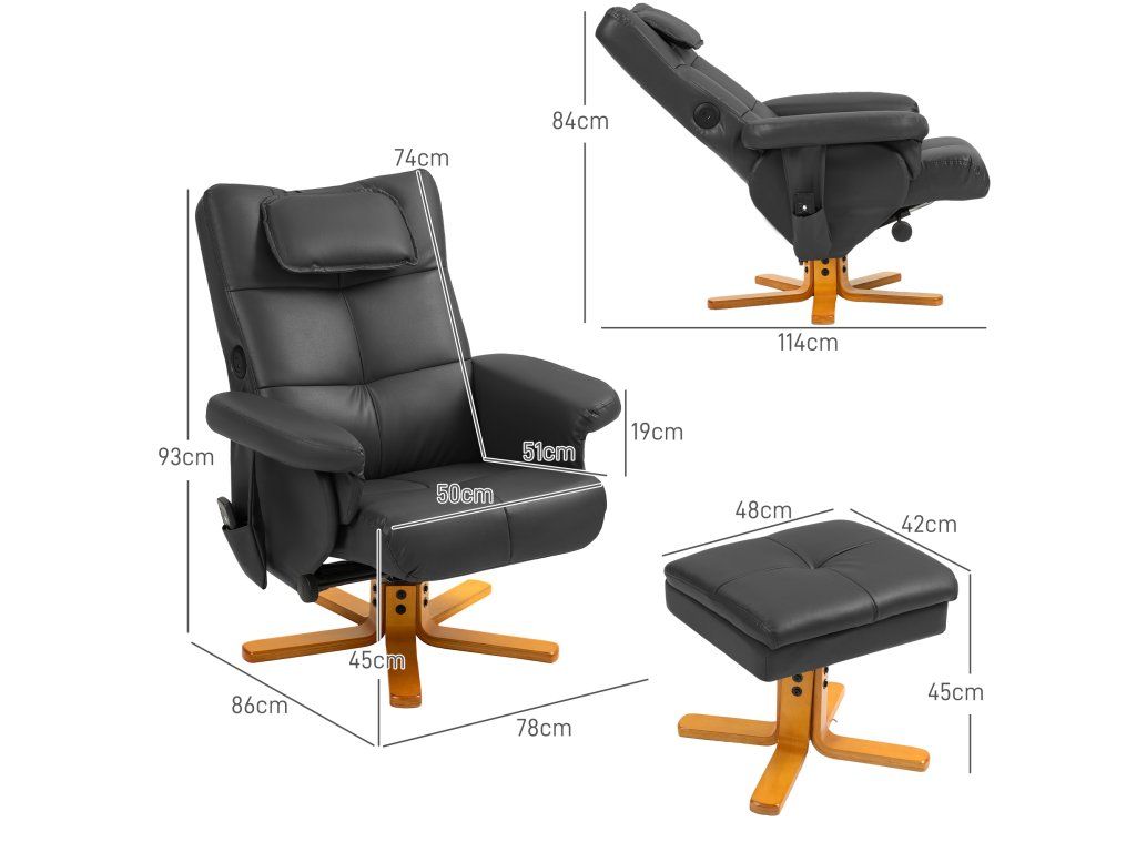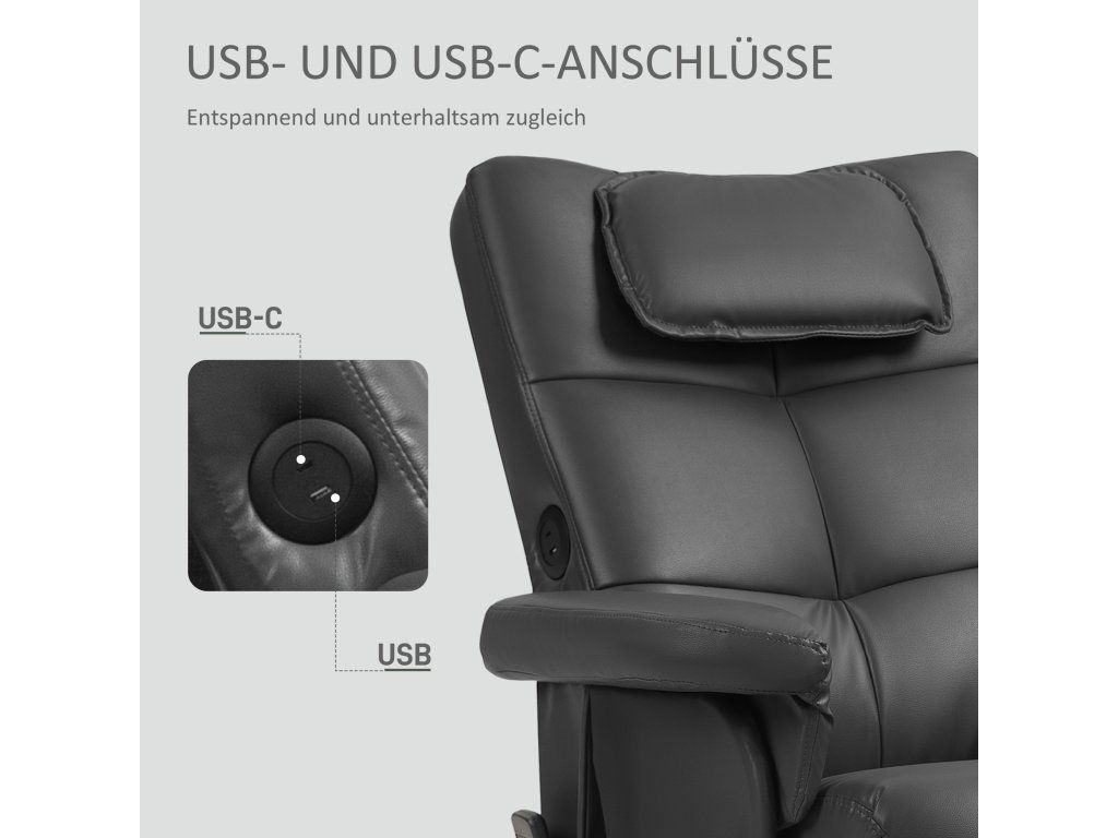 Masážní křeslo HOMCOM s taburetem, nastavitelný opěrák, nabíjecí port USB, kožený vzhled, do 150 kg, černá barva