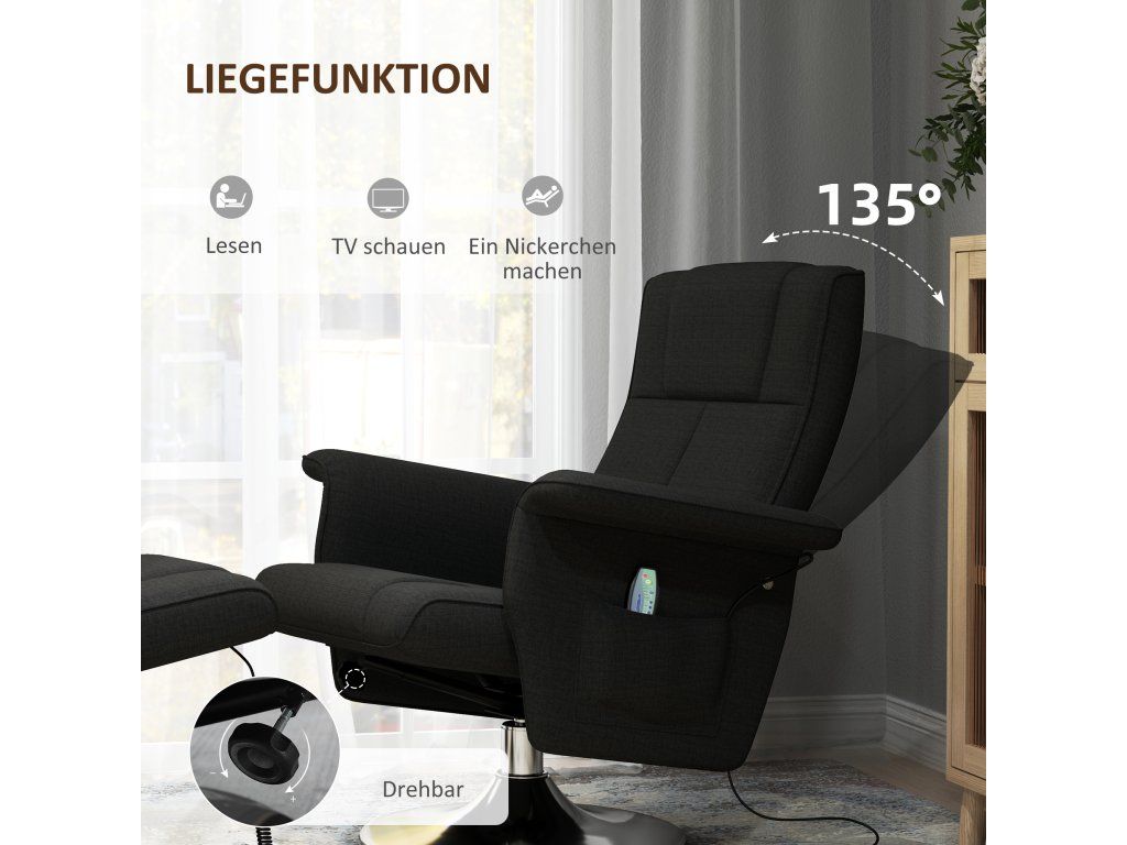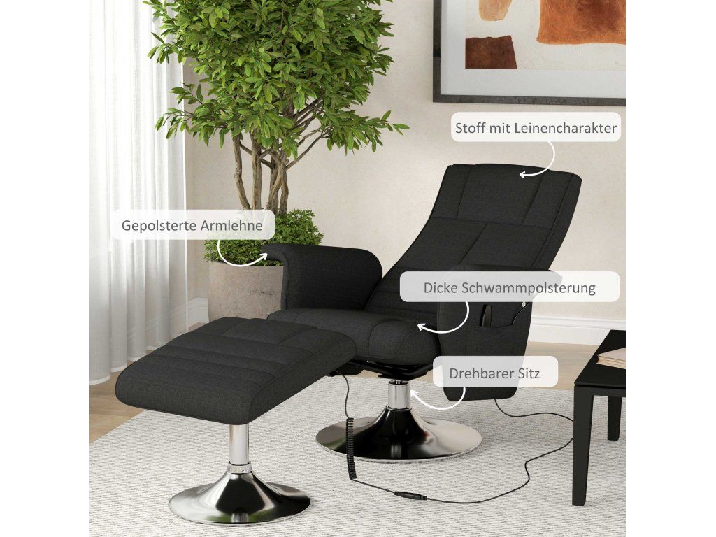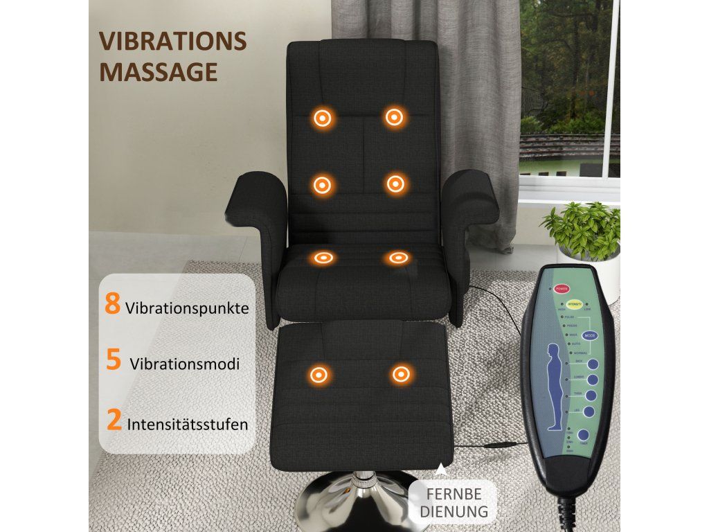 Masážní křeslo HOMCOM s taburetem, polohovatelný opěrák, 78 x 95 x 88 cm, černá barva
