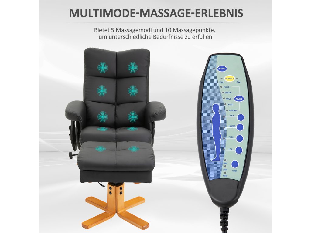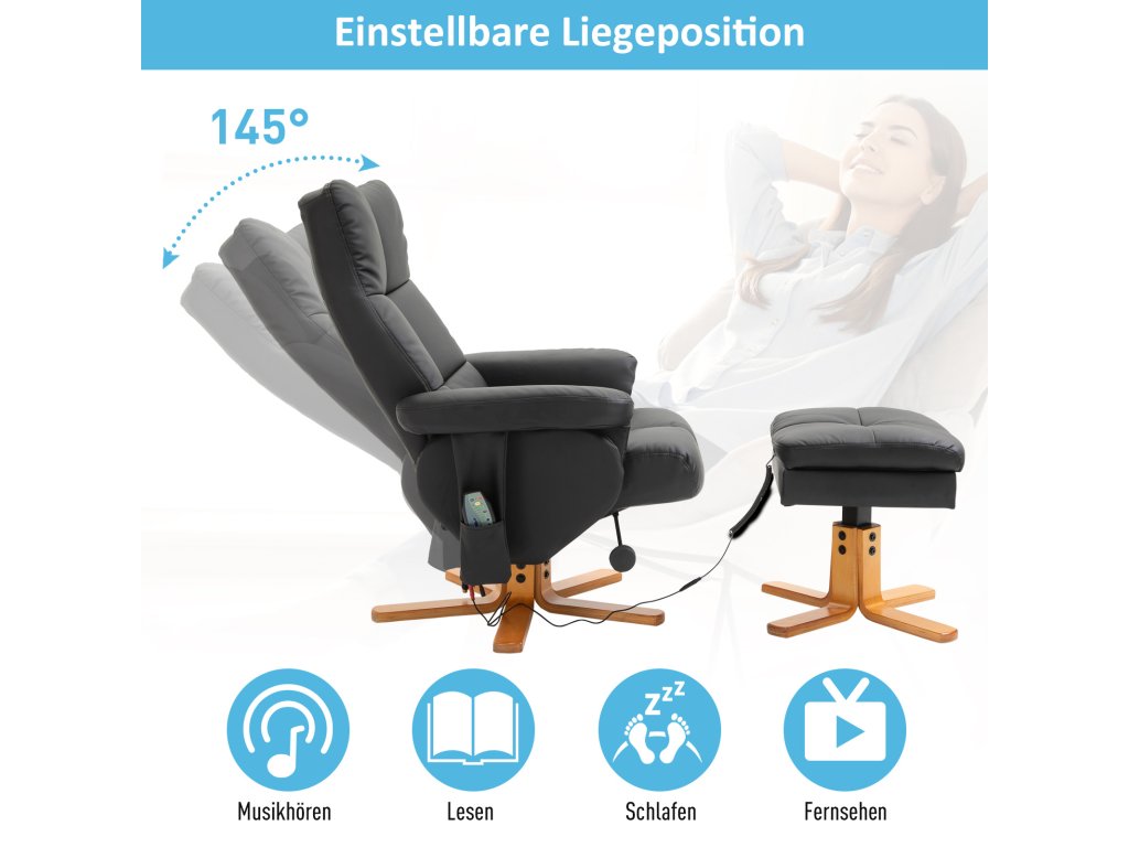 S masážní funkcí: Polohovací křeslo s deseti masážními body a přiložená podnožka poskytují uklidňující relaxaci. Můžete si vybrat z několika režimů.