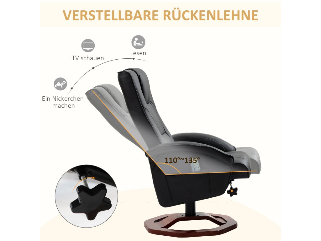 Masážní křeslo s podnožkou otočné, polohovací křeslo s funkcí polohování o 360° z umělé kůže 73 x 83 x 106 cm pro relaxaci