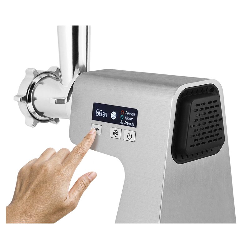 Masomlýnek se snadno ovládá i s mastnýma rukama pomocí tlačítek a velkého LCD displeje, kde sledujete nastavení rychlosti nebo zpětného chodu.