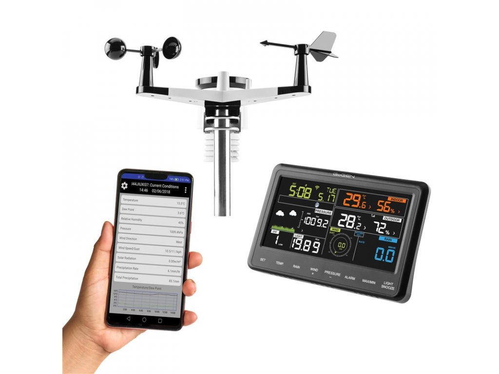 Hodnotami, které meteostanice měří, výčet užitečných funkcí nekončí. Profesionální meteorologická stanice GoGEN ME3900 disponuje možností připojení k domácí WiFi síti. Díky této vlastnosti tak získáváte možnost zobrazení aktuálního stavu počasí v mobilní aplikaci. Neztratíte tak přehled o počasí doma, ani na cestách.