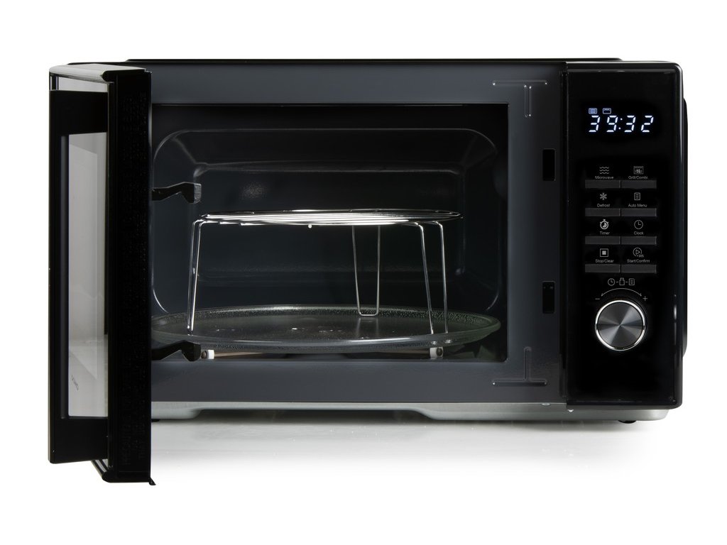 Výkonná volně stojící mikrovlnná trouba s velkým vnitřním objemem umí pokrmy nejen rychle ohřívat, ale pomocí infračerveného grilu zvládnete také rychle a efektivně pokrmy grilovat, nebo s kombinací obou ohřevů pokrm prohřejete a do křupava opečete zároveň. Ovládání trouby vám usnadní tlačítka rychlé volby, přehledný podsvícený displej a otočný ovladač.