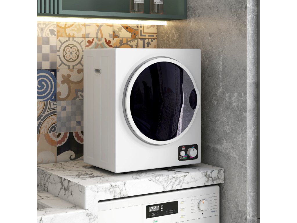 Mini sušička prádla HOMCOM 4 kg se 4 programy, 2 úrovněmi ohřevu, sterilizací až 65 °C, 850 W pro prádlo