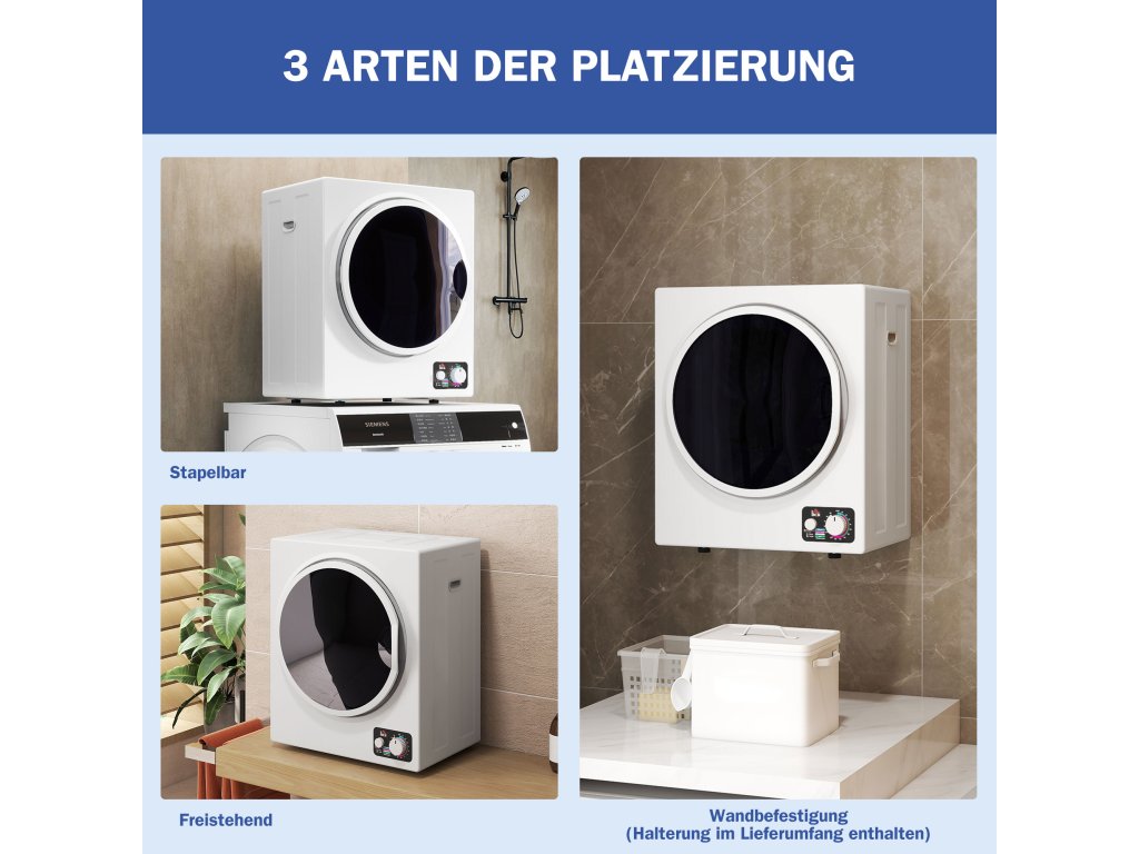 Flexibilní montáž na zeď nebo volné použití: Tato kompaktní sušička prádla (49Š x 40,5H x 60V cm) se flexibilně přizpůsobí různým uspořádáním místností. Lze jej namontovat na zeď pomocí dodaných držáků nebo použít jako volně stojící jednotku. Jeho prostorově úsporný design nabízí všestranné možnosti umístění.