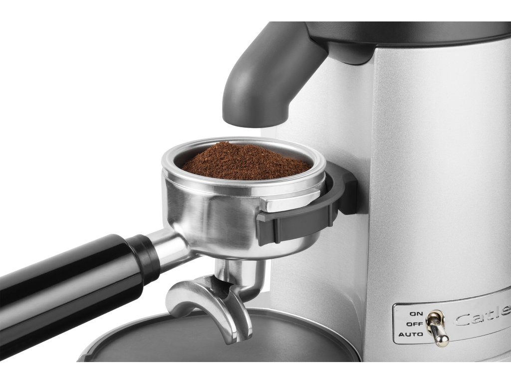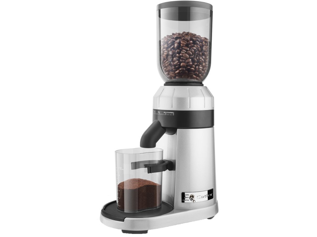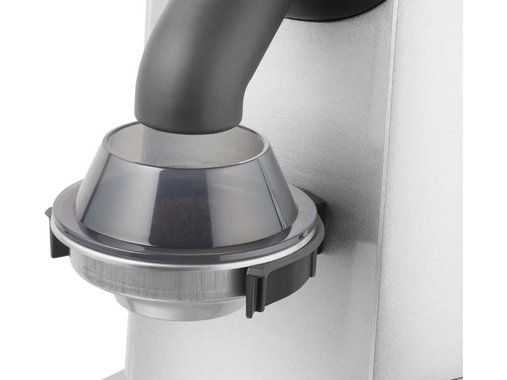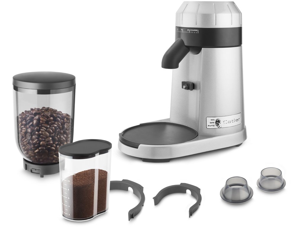 Profesionální mlýnek na kávu Catler je vybaven 2 držáky pro různé velikosti pák a nádobu na umletou kávu.