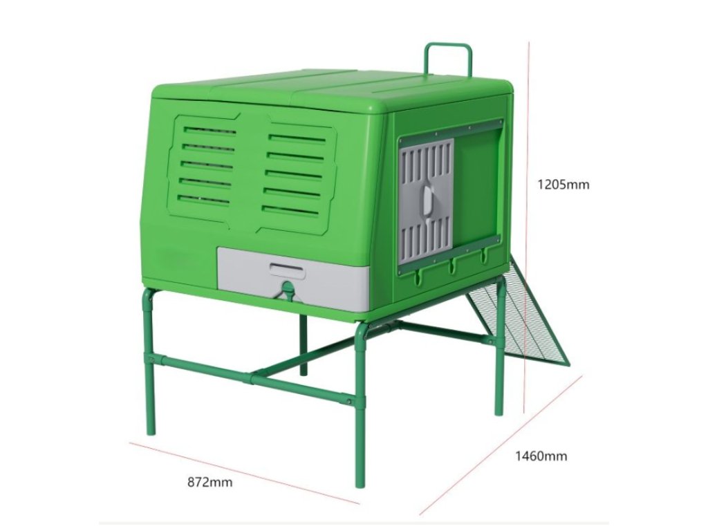 Tento model představuje kombinaci funkčnosti, hygieny a moderního designu v kompaktním provedení – ideální volba pro chovatele, kteří chtějí mít své slepice v bezpečí a bez zbytečné práce navíc.