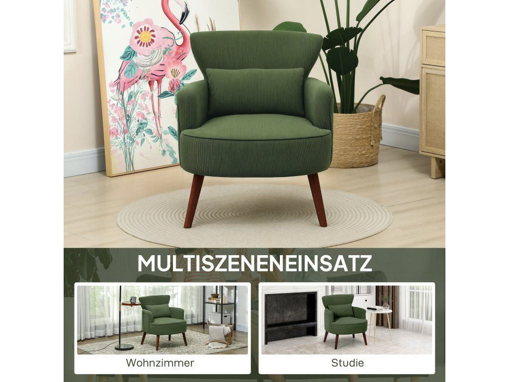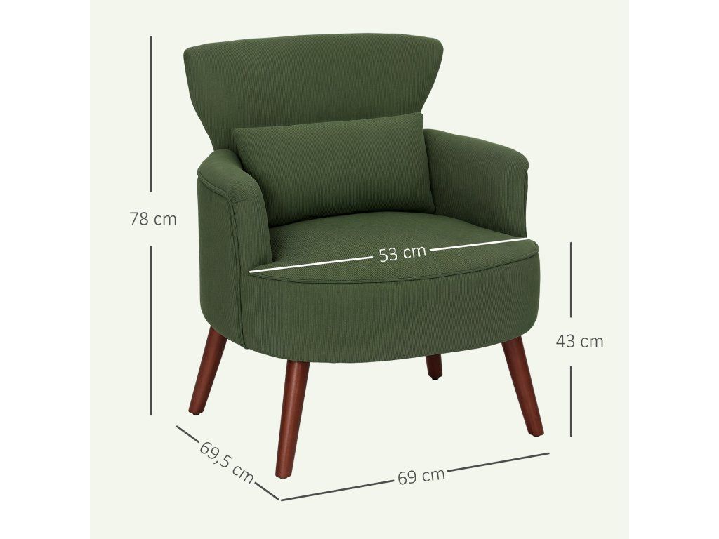 Moderní křeslo HOMCOM, čalouněné křeslo s bederním polštářem, zelené