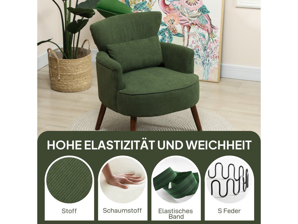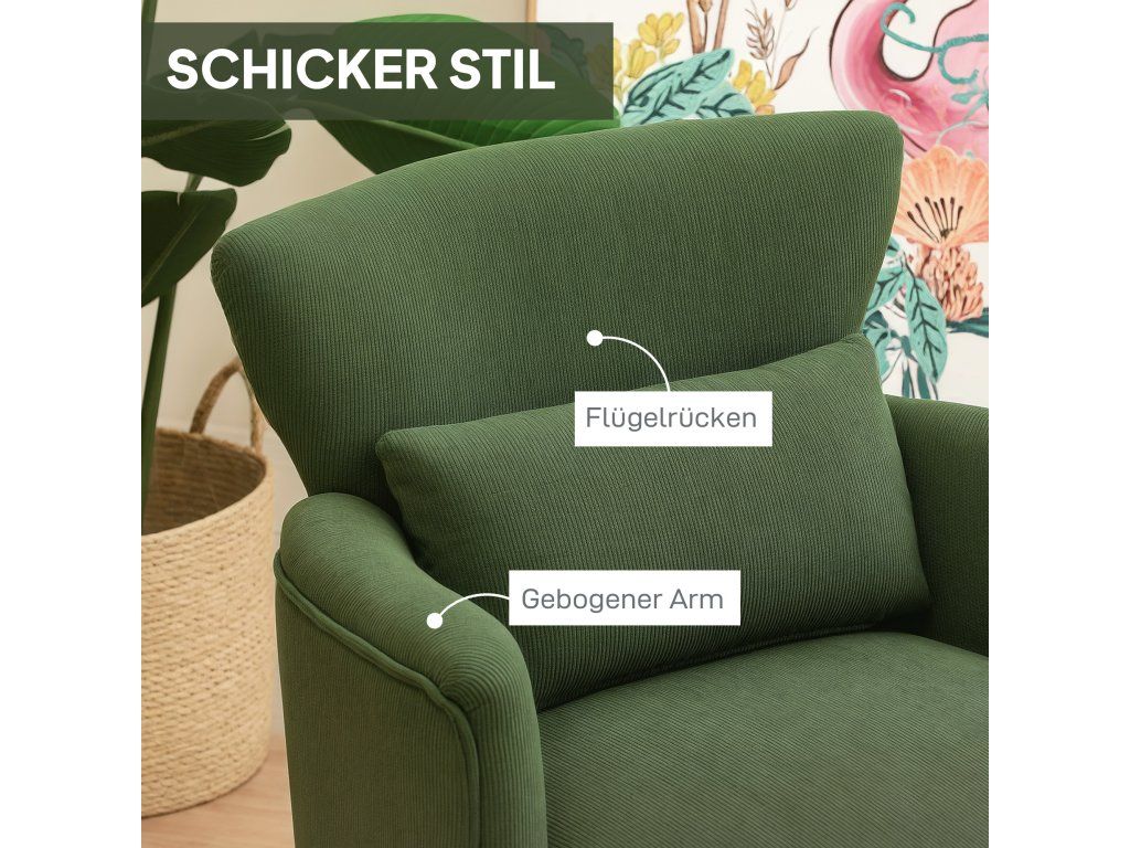 Usaďte se do pohodlného čalouněného křesla HOMCOM, které bude perfektním doplňkem vašeho obývacího pokoje nebo ložnice. Toto kompaktní a útulné křeslo je čalouněné měkkou pěnou s vysokou hustotou a pružinami ve tvaru S z měkké manšestrové látky, která se přizpůsobí vašemu tělu. Vysoké opěradlo a zakřivené područky křesla poskytují elegantní oporu, ideální pro relaxaci v obývacím pokoji nebo v útulném čtecím koutku.