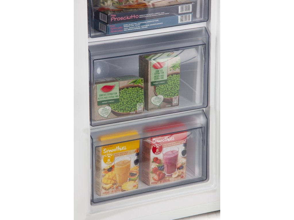 Jednou z největších výhod tohoto mrazáku jsou otočné dveře s magnetickým uzávěrem. To vám dává flexibilitu namontovat dveře na levou nebo pravou stranu, v závislosti na uspořádání vaší kuchyně. Mechanická regulace teploty vám umožňuje snadno nastavit ideální teplotu, zatímco tři průhledné zásuvky usnadňují organizaci mražených potravin.
