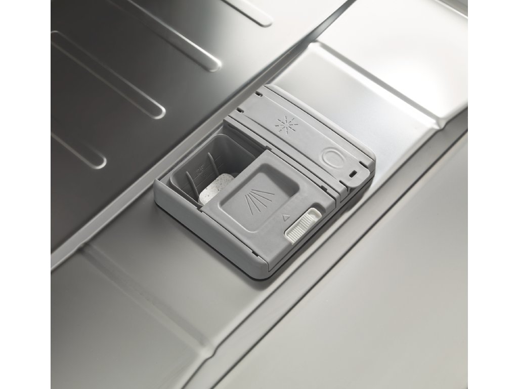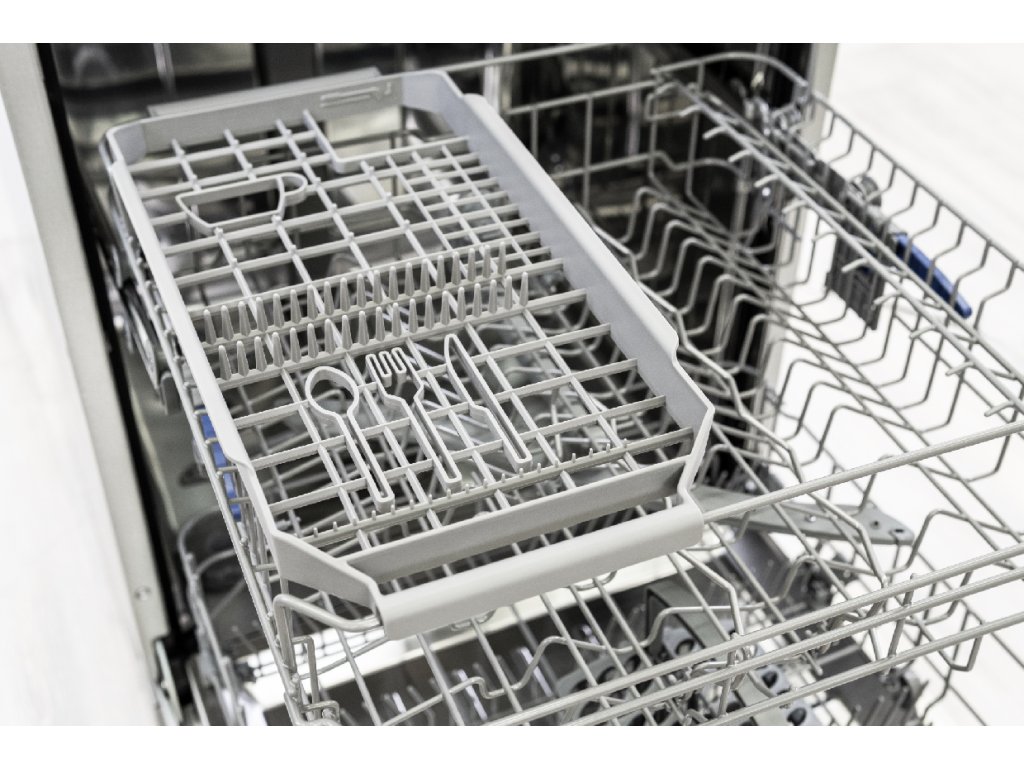 Ergonomické vymoženosti, jako je výškově nastavitelný horní koš a mini posuvný koš, vám umožní přizpůsobit prostor podle vašich potřeb. Chytrá funkce SpotLight vás informuje o ukončení mytí světelným paprskem. Pro ty, kdo dbají na detaily, myčka nabízí kontrolky nízké hladiny soli a leštidla, nerezový filtr a vnitřní povrch, a konvekční sušení s automatickým otevíráním dveří na konci mycího cyklu.