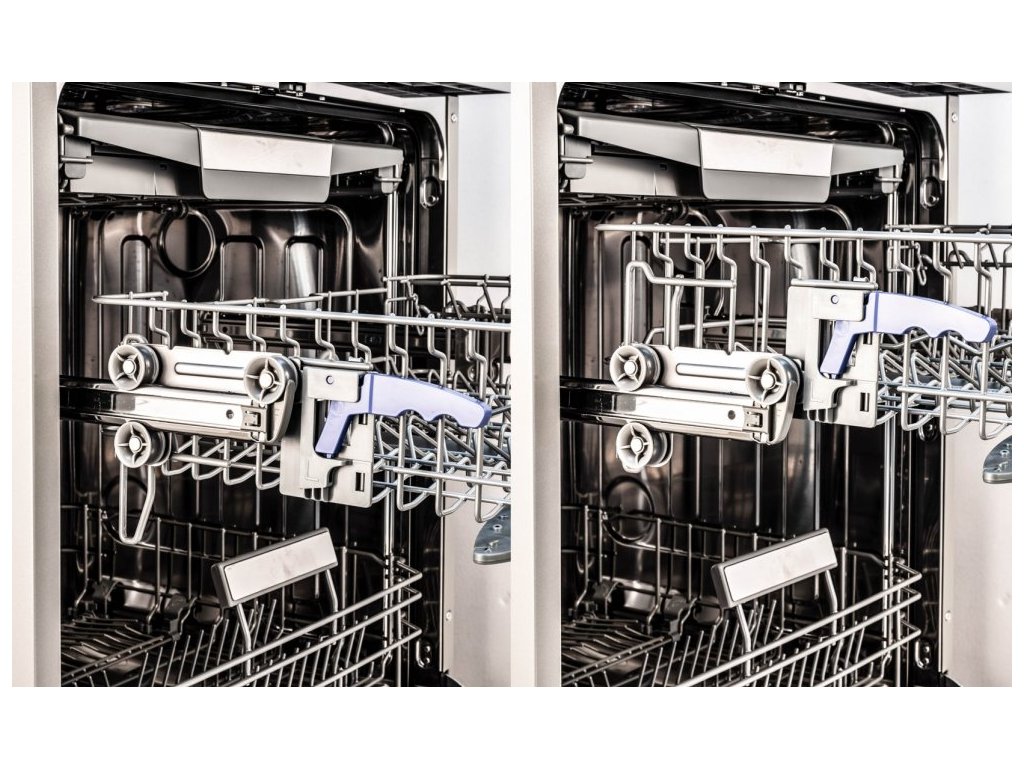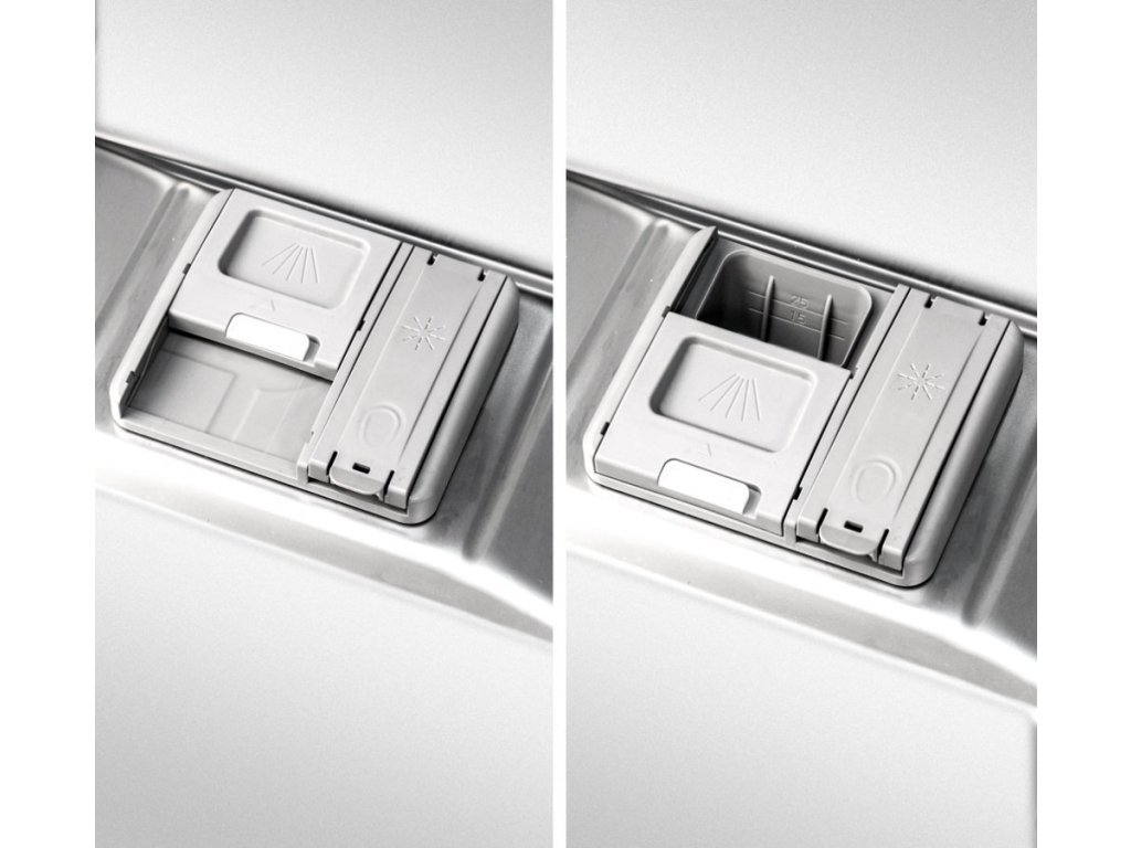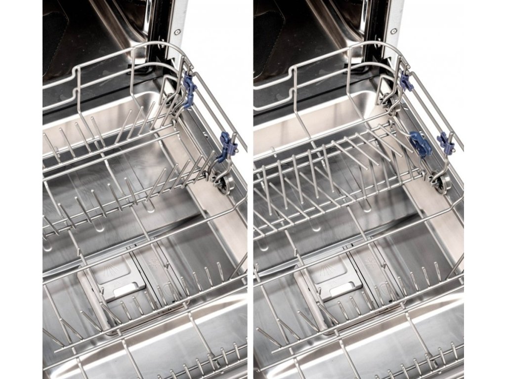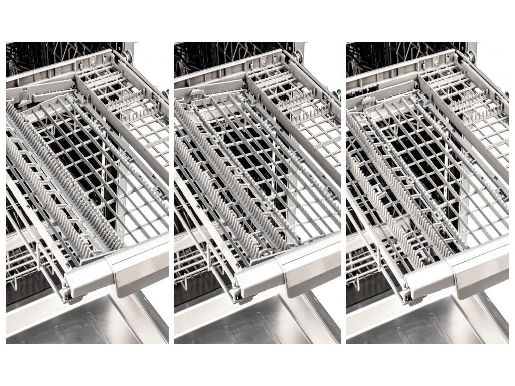 Myčka zvládne najednou 10 jídelních sad. Je vnitřně uspořádána tak, aby se každý kousek nádobí dokonale umyl a vysušil. Nádobí můžete vkládat do tří úrovní, přičemž jedna z nich je určena především na příbory. Ty kolem sebe budou mít spoustu místa a voda i čisticí prostředek se k nim jednoduše dostane. Horní koš je výškově nastavitelný a to i při plném naplnění a je tedy možné rychle zvýšit prostor nad spodním košem pro objemnější nádobí.