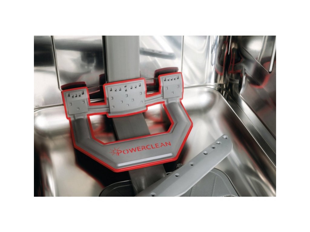 POWER CLEAN je patentovaná technologie Whirlpool pro mytí silně znečištěného nádobí ve vyhrazeném prostoru spodního koše vysokým tlakem vody, proudícího ze zadních trysek. Využitím zóny PowerClean se zvýší kapacita spodního koše o 30%.