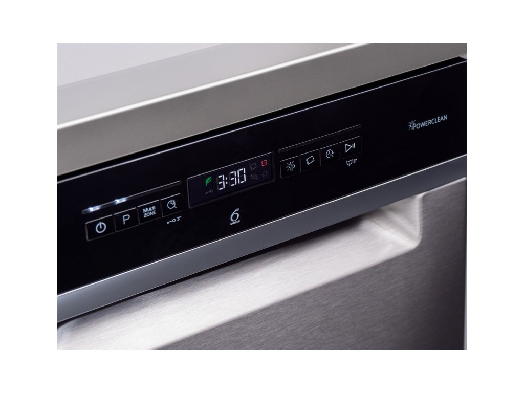 Volně stojící myčka nádobí Whirlpool WSFO 3O34 PF X v energetické třídě D s technologií 6. SMYSL